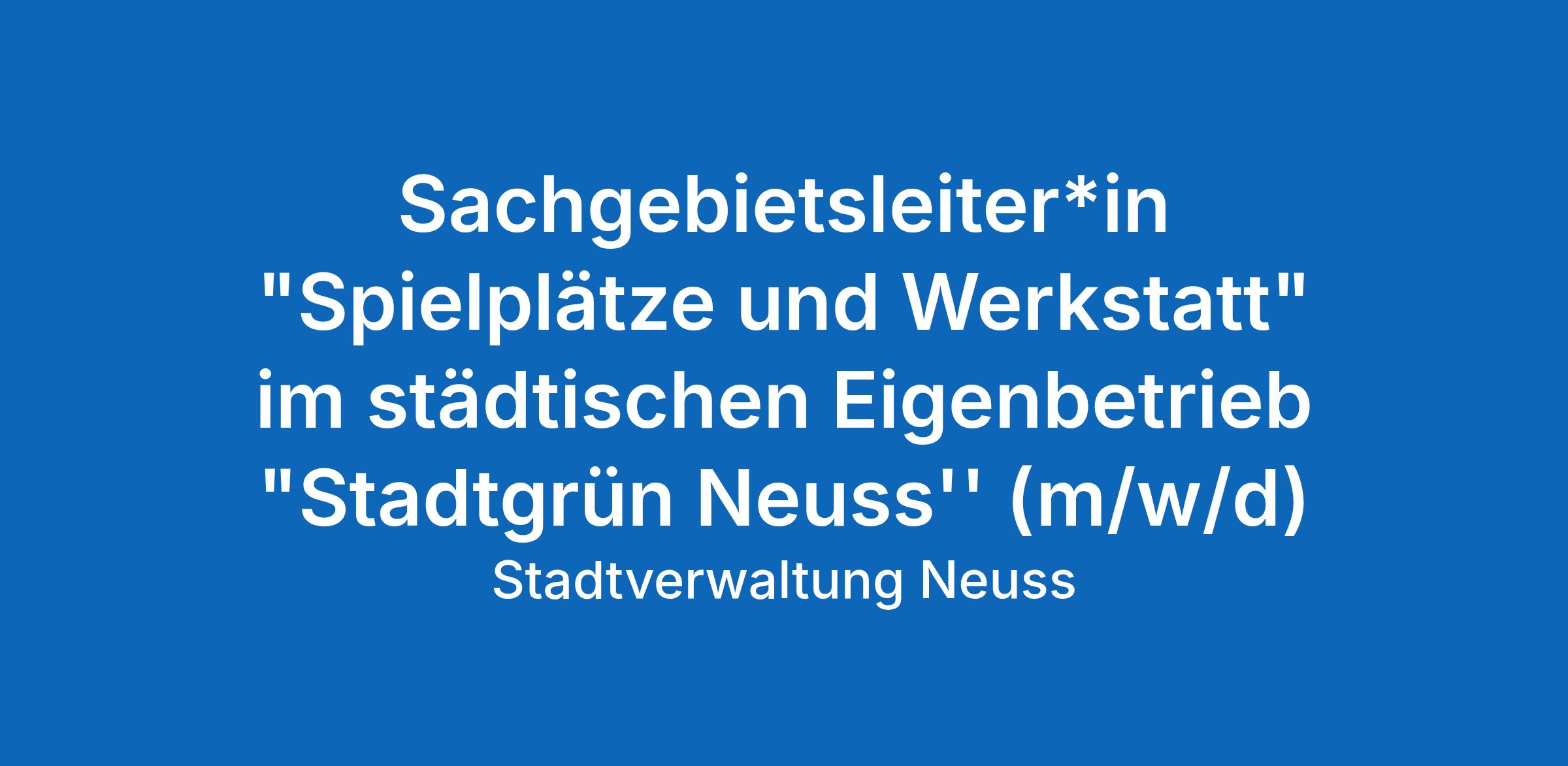 In unserem Sachgebiet "Spielplätze und Werkstatt“ gehörst Du zur Abteilung "Verkehrssicherung" des städtischen Eigenbetriebs "Stadtgrün Neuss" mit derzeit über 150 Mitarbeiter*innen.