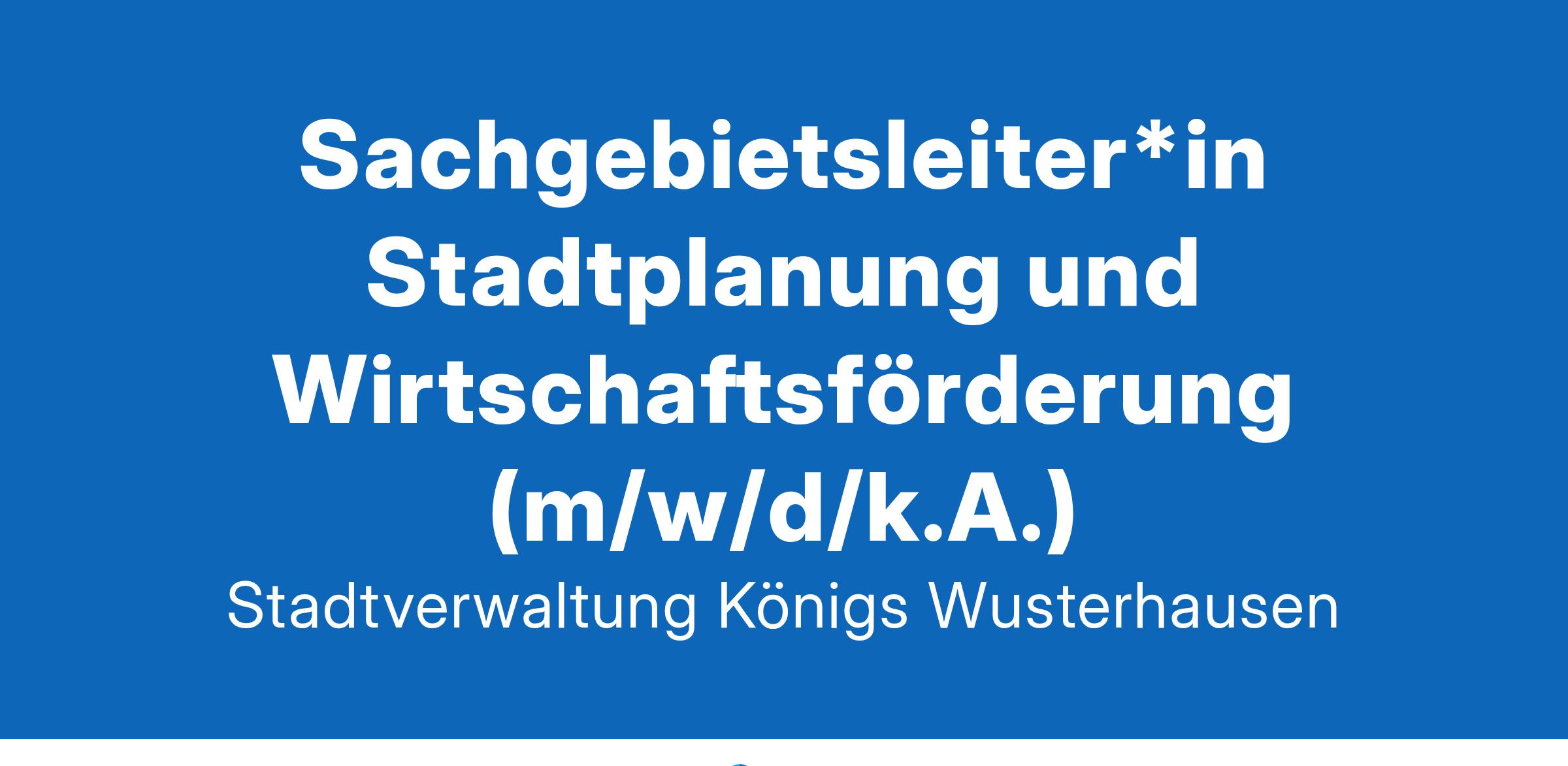 operative und strategische Leitung und Weiterentwicklung des Sachgebietes Stadtplanung und Wirtschaftsförderung,Koordination der Bauleitplanung und der informellen städtebaulichen Planungen der Stadt Königs Wusterhausen,Beratung und Begleitung von investiven Flächenentwicklungen intern sowie extern,Mitwirkung in der Wirtschaftsförderung,Steuerung der Gebietskulissen der Städtebauförderungsprogramme,Sie kommunizieren mit der Verwaltungsleitung und öffentlichen Akteuren,Beteiligung bei der Entwicklung der Flughafenregion BER und einem Regionalen Wachstumskern,Sie agieren in Interkommunalen und interregionalen KooperationenDas bringen Sie mitein erfolgreich abgeschlossenes Hochschulstudium (Master- oder Diplomabschluss) in der Studienrichtung Stadt- und Regionalplanung, Stadt- und Raumplanung oder Architektur und Städtebau,fachlich einschlägige Berufserfahrung im künftigen Tätigkeitsfeld sowie entsprechende Führungserfahrung in einer vergleichbaren Position,umfassende Kenntnisse im Verwaltungs- und Haushaltsrecht,Erfahrungen in der Umsetzung von Vorhaben mit öffentlicher Förderung werden vorausgesetzt,fundierte Kenntnisse von Rechtsvorschriften (u.a. BauGB, BGB, VgV, UVgO, HOAI, VOB),Bereitschaft zur Teilnahme an abendlichen Sitzungen und Veranstaltungen,eine selbständige, effiziente, verantwortungsbewusste Arbeitsweise sowie ausgeprägtes, strategisches und analytisches Denken,Kreativität und Flexibilität sowie ausgeprägte kommunikative FähigkeitenWir freuen uns auf Ihre Bewerbung!