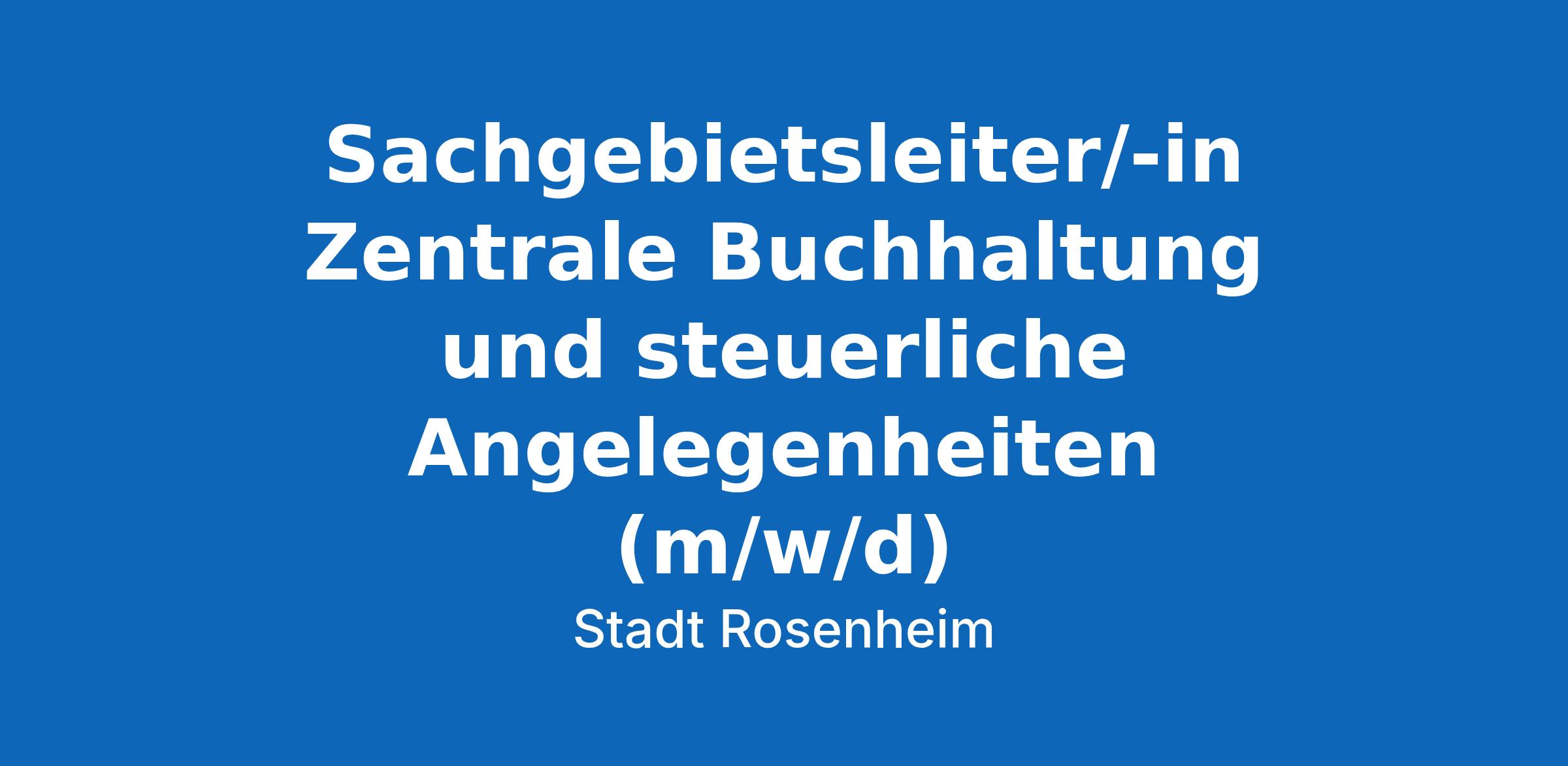 Die Stadt Rosenheim, Kämmereiamt, sucht zum nächstmöglichen Zeitpunkt eine/-n Sachgebietsleiter/-in Zentrale Buchhaltung und steuerliche Angelegenheiten (m/w/d) möglichst in Vollzeit.