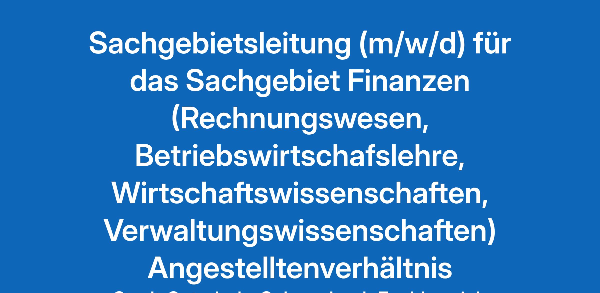 Sachgebietsleitung (m/w/d) für das Sachgebiet Finanzen (Rechnungswesen, Betriebswirtschafslehre, Wirtschaftswissenschaften, Verwaltungswissenschaften) Angestelltenverhältnis