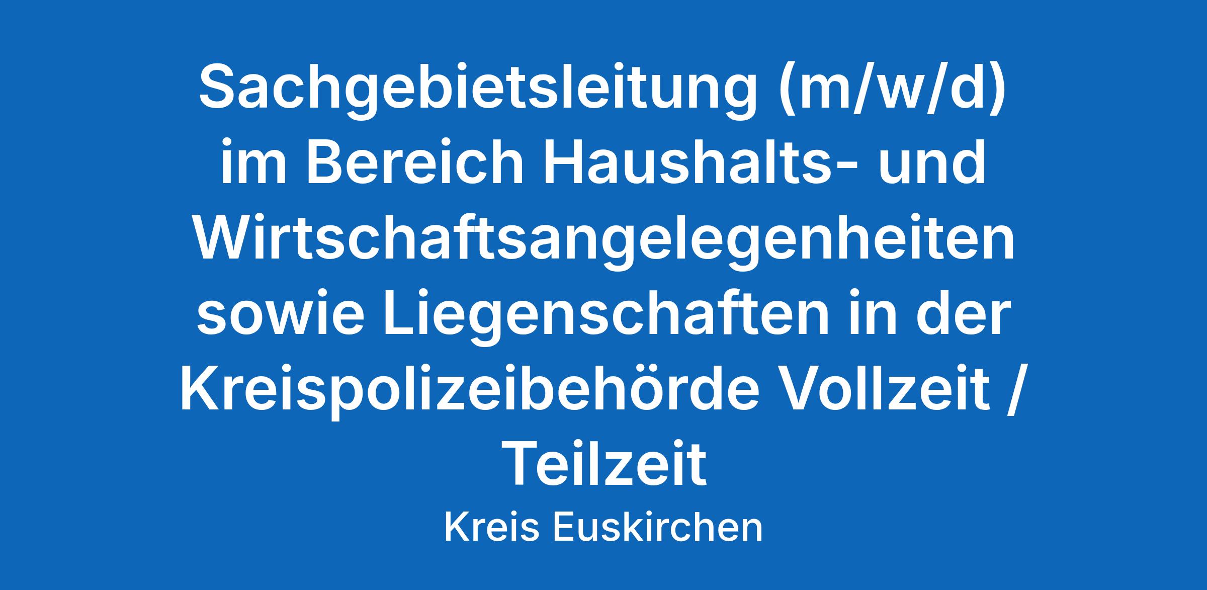 Sachgebietsleitung (m/w/d) im Bereich Haushalts- und Wirtschaftsangelegenheiten sowie Liegenschaften in der Kreispolizeibehörde