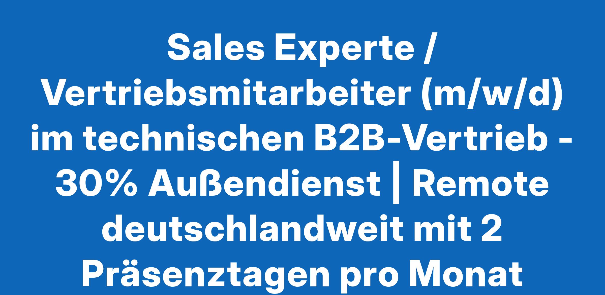 Sales Experte / Vertriebsmitarbeiter (m/w/d) im technischen B2B-Vertrieb - 30% Außendienst | Remote deutschlandweit mit 2 Präsenztagen pro Monat