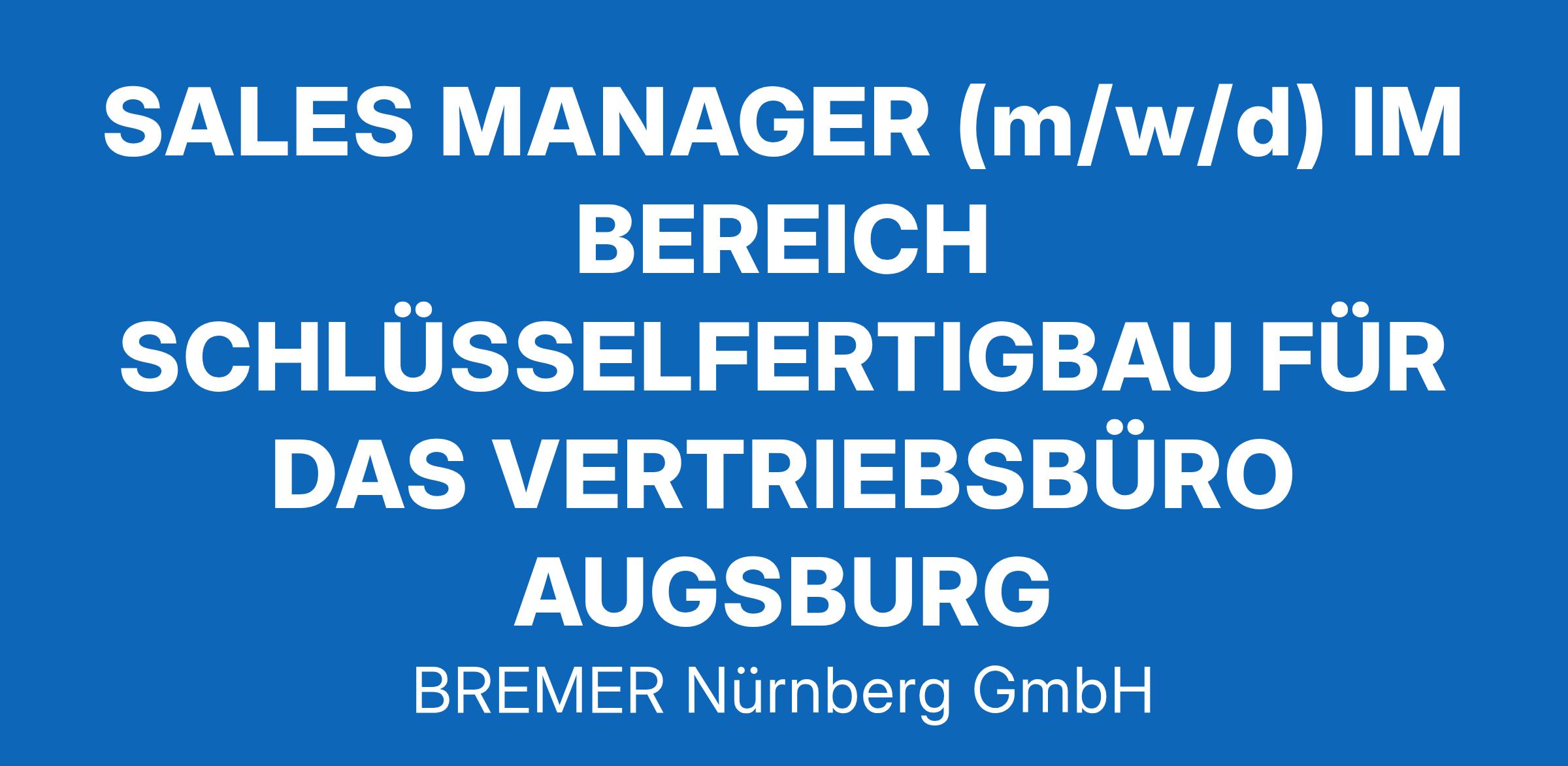 SALES MANAGER (m/w/d) IM BEREICH SCHLÜSSELFERTIGBAU FÜR DAS VERTRIEBSBÜRO AUGSBURG