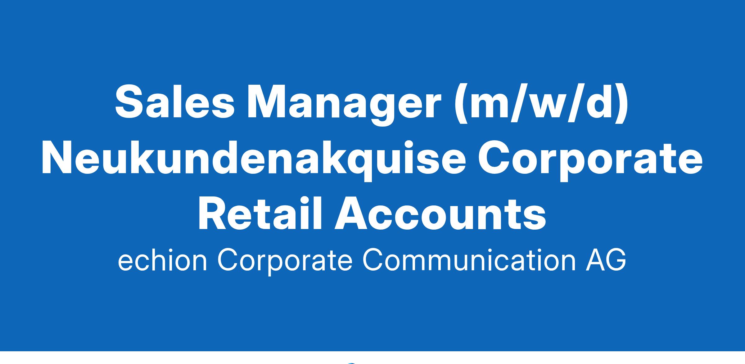 Sales Manager (w/m/d) Neukundenakquise Corporate Retail Accounts Augsburg und mobil - unbefristet - Vollzeit Marken für alle Sinne erlebbar machen – das kann auch Deine Mission werden! Abgeleitet aus Markenwerten entwickeln wir individuelle Kontaktpunktstrategien und sind einer der führenden Full-Service-Dienstleister in Deutschland für Instore Audio, Digital Signage, LED-Installationen, sowie Duft-Marketing. Das gibt es für Dich zu tun: Du durchforstest aktiv LinkedIn, Google und Co., um neue Accounts für unsere Produkte (Instore Audio, Digital Signage, LED-Installationen und Duft-Marketing) aufzuspüren Egal ob auf Messen, Veranstaltungen, per E-Mail oder per Telefon: Du stellst den Erstkontakt zu potenziellen Accounts her und machst diese neugierig auf unsere Leistungen Du erstellst passgenaue Konzepte und Angebote und bist die erste Anlaufstelle für vertriebliche Fragen Das bringst Du mit: Du brennst für Vertrieb und lässt Dich nicht so leicht unterkriegen Du bist schon erfahren, was das B2B-Business angeht Du organisierst Dich selbst und bringst Dich aktiv ein Du kennst die wesentlichen Schritte eines zielorientierten Verkaufszyklus und hast dabei stets den Geschäftserfolg im Blick Idealerweise hast Du Dir schon ein Netzwerk in der Retail-Branche aufgebaut Du willst, dass sich Deine Leistung auch in Deinem Gehalt widerspiegelt Das und vieles mehr bieten wir Dir: Damit Du vernünftig arbeiten kannst, bekommst Du von uns moderne Hardware und ein Firmenhandy zur Verfügung gestellt Wir bieten Dir ein Vergütungsmodell, das gar nicht anders kann, als Dich anzuspornen Du erhältst einen neutralen Geschäftswagen, auch zur privaten Nutzung Du profitierst von unseren Corporate Benefits, auch für Deine Zeit nach dem Berufsleben Wir ermöglichen Dir Fort- und Weiterbildungen, die nicht nur uns, sondern auch Dich voranbringen Wir lieben Teamevents und feiern gemeinsam neue Accounts oder abgeschlossene Projekte Übrigens: Auch wenn Du nicht alle aufgeführten Skills mitbringst, kannst Du trotzdem die richtige Person für die Stelle als Sales Manager*in sein. Trau Dich und bewirb Dich bei uns, wenn Du denkst, dass Du unser „missing piece“ bist! Du denkst Dir jetzt “Das passt!”? Dann freuen wir uns sehr auf Deine Bewerbung! Du hast noch Fragen zum Bewerbungsprozess? Sibylle Wyciok hilft dir gerne weiter! Wir freuen uns jetzt schon auf Deine Bewerbung. Bitte sende uns Deine aussagekräftigen Unterlagen in deutscher Sprache inklusive Deiner Gehaltsvorstellung und Deinem frühestmöglichen Eintrittsdatum online über unser Bewerbungsformular: www.echion.de/karriere echion Corporate Communication AG Frau Sibylle Wyciok hr@echion.de Curt-Frenzel-Str. 10 86167 Augsburg DIE ECHION MEDIAGROUP