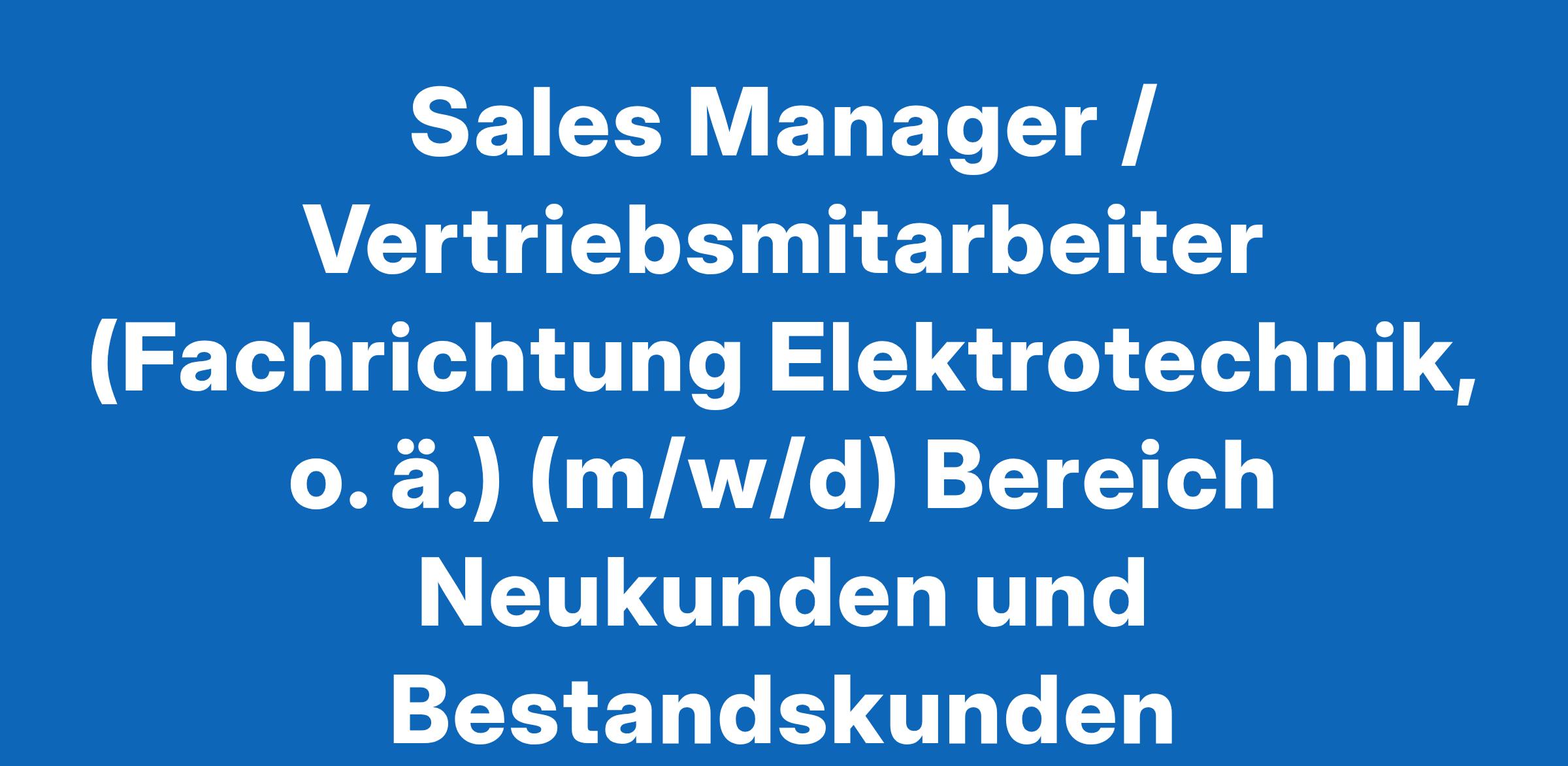Sales Manager / Vertriebsmitarbeiter (Fachrichtung Elektrotechnik, o. ä.) (m/w/d) Bereich Neukunden und Bestandskunden