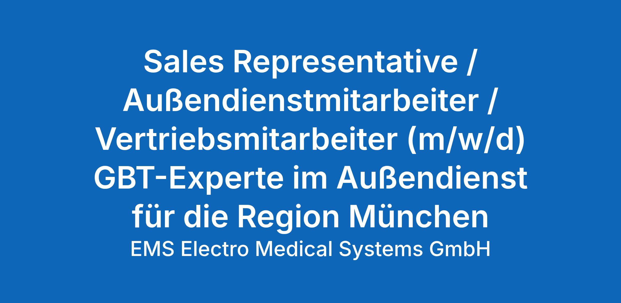Sales Representative / Außendienstmitarbeiter / Vertriebsmitarbeiter (m/w/d) GBT-Experte im Außendienst für die Region München (PLZ 80, 81, 85)