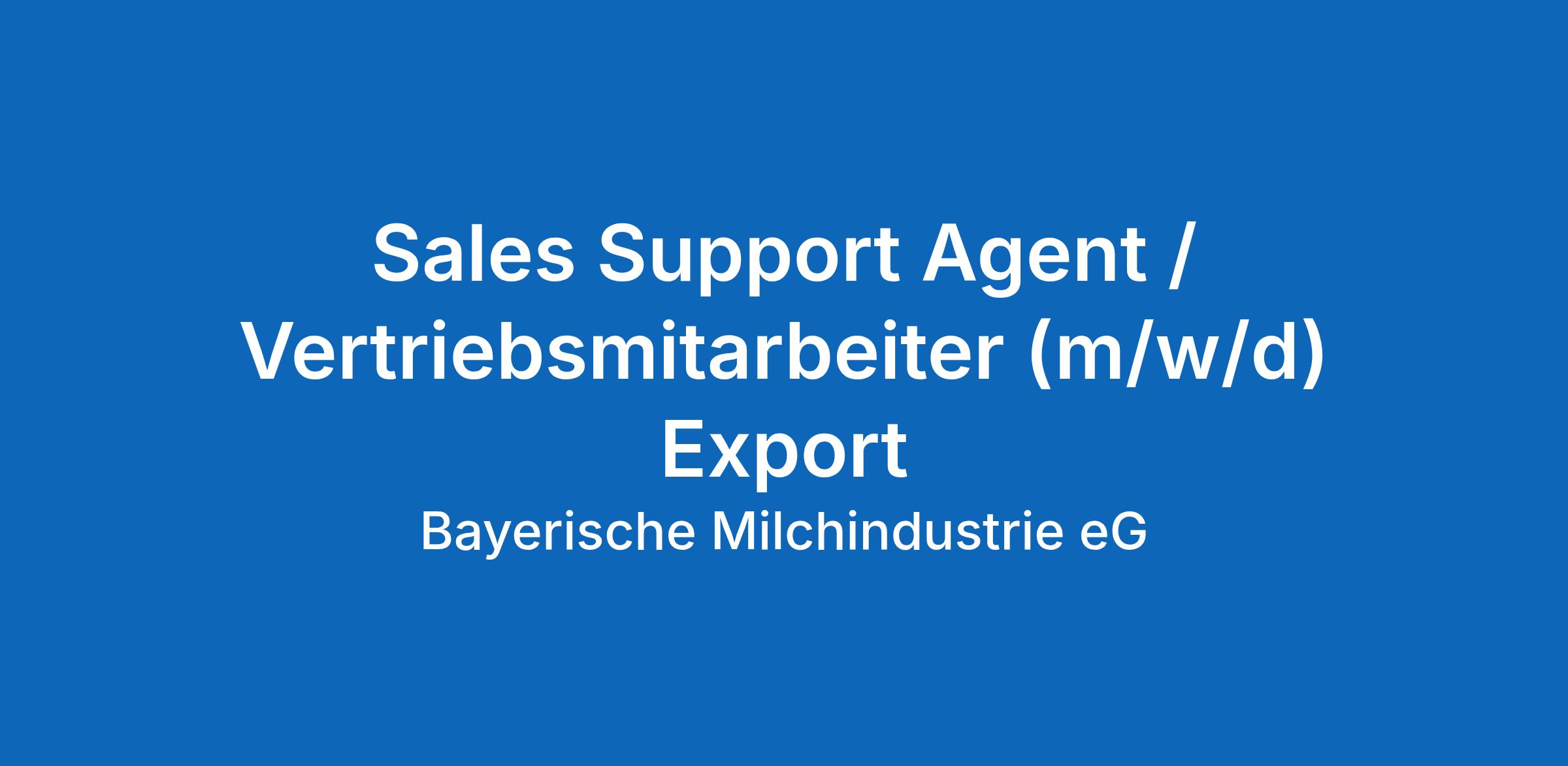 Sales Support Agent / Vertriebsmitarbeiter (m/w/d) Export