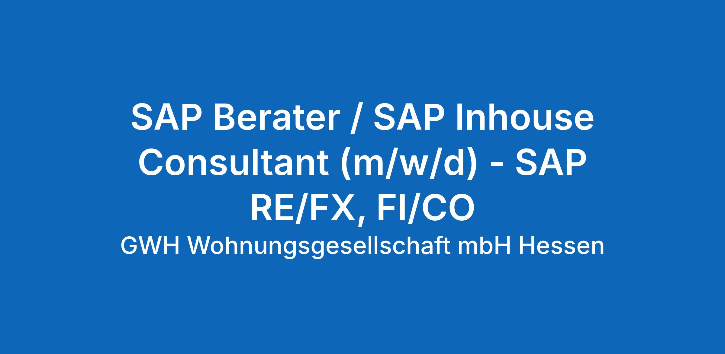 Als Tochter der Helaba gehört die GWH gemeinsam mit der GWH Bauprojekte GmbH, der GWH Digital GmbH, der GWH WertInvest GmbH, der GGM Gesellschaft für Gebäude-Management mbH, der Systeno GmbH und GWH WohnWerk GmbH zu den Großen der Immobilienbranche. Unser Hauptgeschäft ist es, Menschen Räume zum Leben zu geben. Mit unseren rund 600 Mitarbeitenden bewirtschaften wir insgesamt 50.000 Wohnungen für alle Altersklassen und zu fairen Preisen. Zur Verstärkung unseres Teams suchen wir zum nächstmöglichen Zeitpunkt einen SAP Berater / SAP Inhouse Consultant (m/w/d) - SAP RE/FX, FI/CO mit Spaß an der Zusammenarbeit im Team. Freuen Sie sich auf eine offene Unternehmenskultur bei einem sicheren Arbeitgeber, innovative Projekte und eine Work-Life-Balance, die Ihrer Karriere ganz neue Räume eröffnet.