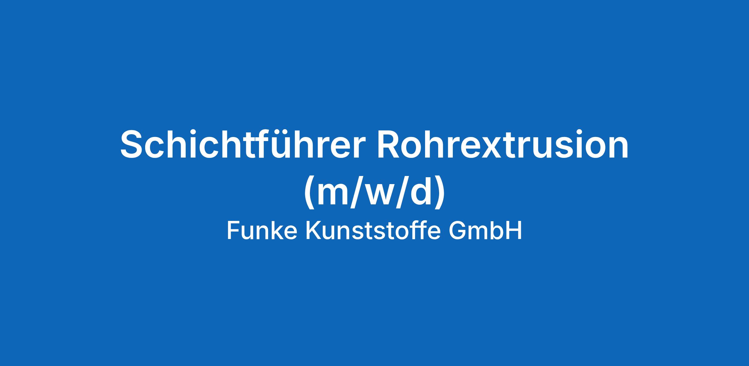 Abgeschlossene Berufsausbildung zum Verfahrensmechaniker Kunststoff-/ Kautschuktechnik, Industriemechaniker, Mechatroniker (m/w/d) und/oder mehrjährige Erfahrung als Schichtführer (m/w/d) im Bereich Rohrextrusion