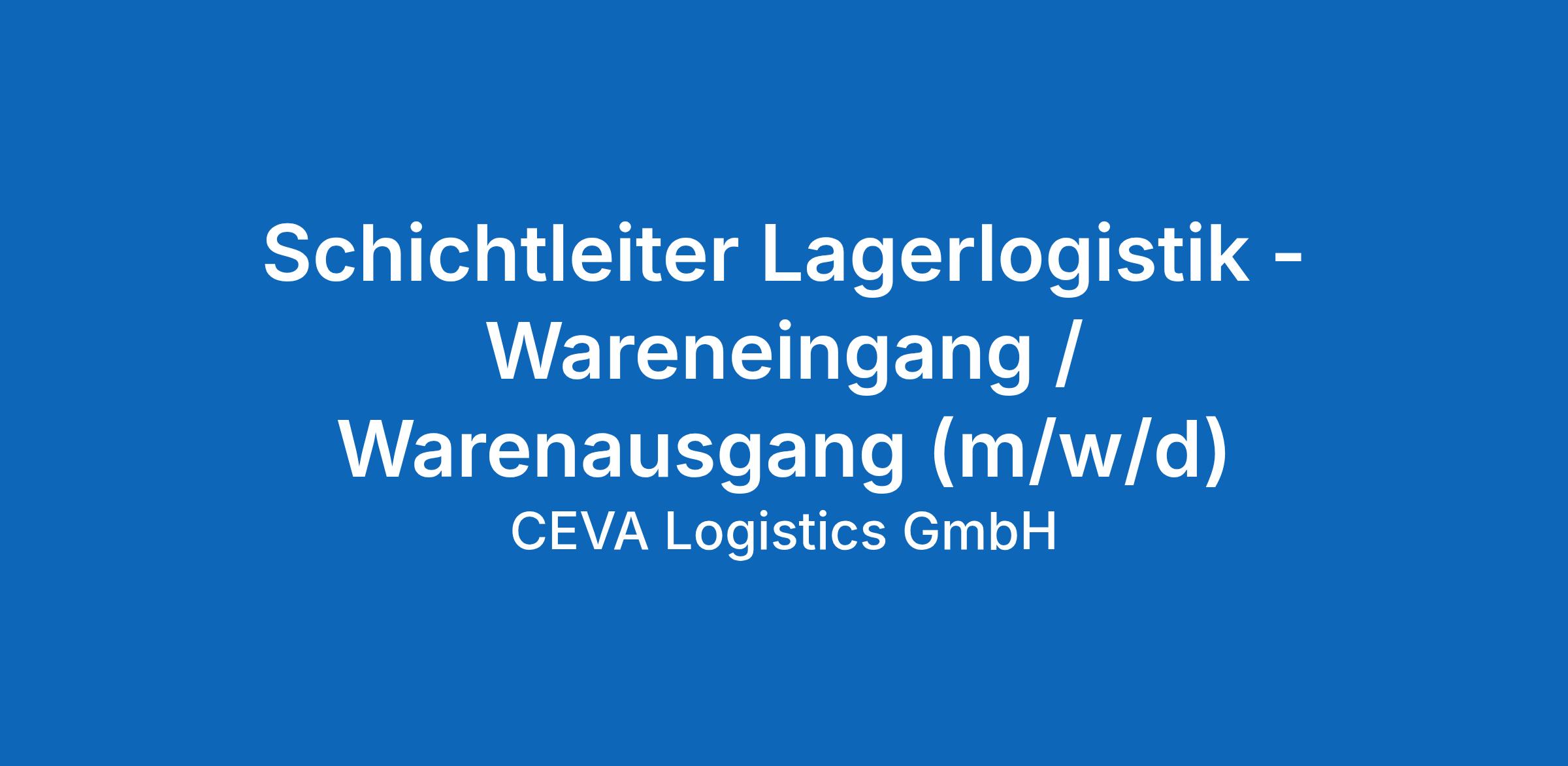 Schichtleiter Lagerlogistik - Wareneingang / Warenausgang (m/w/d)