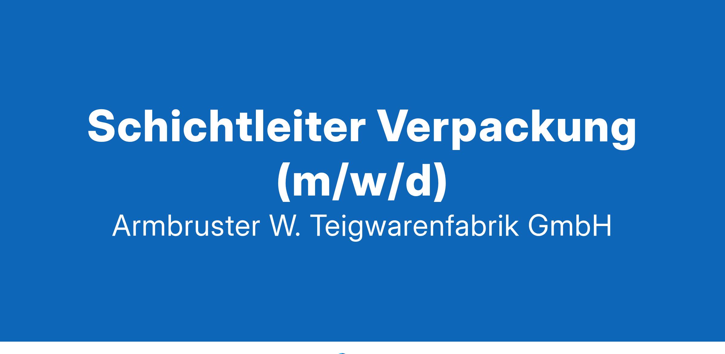 Über unsWir entwickeln, produzieren und vertreiben von unserem Standort im badischen Willstätt aus hochwertige Spätzle- und Nudelprodukte verschiedenster Rezepturen und Ausformungen. Mit modernster Fertigungstechnologie und dem Know-How aus unserer über 100-jährigen Firmengeschichte sind wir einer der führenden Teigwarenproduzenten Deutschlands und beliefern Kunden in der ganzen Welt mit unseren Teigwarenspezialitäten. Zum nächstmöglichen Zeitpunkt suchen wir für unseren Firmenstandort einen Schichtleiter Verpackung (m/w/d) Diese Aufgaben erwarten Dich bei uns: Die Organisation, Überwachung und Abarbeitung der Verpackungsaufträge Die Einarbeitung, Führung und Weiterentwicklung der unterstellten Mitarbeiter Die Umsetzung und Weiterentwicklung der Qualitätsstandards im Verpackungsbereich Das Einstellen und Umrüsten von Verpackungsanlagen Damit überzeugst Du uns: Eine abgeschlossene technische Ausbildung bspw. als Mechatroniker (m/w/d), Elektroniker (m/w/d), Industriemechaniker (m/w/d), Techniker (m/w/d) oder Meister (m/w/d) Gutes technisches Verständnis und großes Verantwortungsbewusstsein Strukturierte und eigenständige Arbeitsweise sowie souveränes Auftreten Teamfähigkeit und Kommunikationsstärke Gerne Berufserfahrung in einem ähnlichen Tätigkeitsgebiet Bereitschaft zur Arbeit in Frühschicht und Spätschicht Wir bieten: Einen langfristigen, zukunftssicheren Arbeitsplatz und ein unbefristetes Arbeitsverhältnis Ein familiäres Arbeitsklima und kurze Entscheidungswege Individuelle Weiterbildungen und Fortbildungsmöglichkeiten Bonuszahlungen Fahrrad Leasing mit 50 % Bezuschussung Betriebliches Gesundheitsmanagement Gerne erwarten wir deine Bewerbung an:Armbruster W. Teigwarenfabrik GmbH
