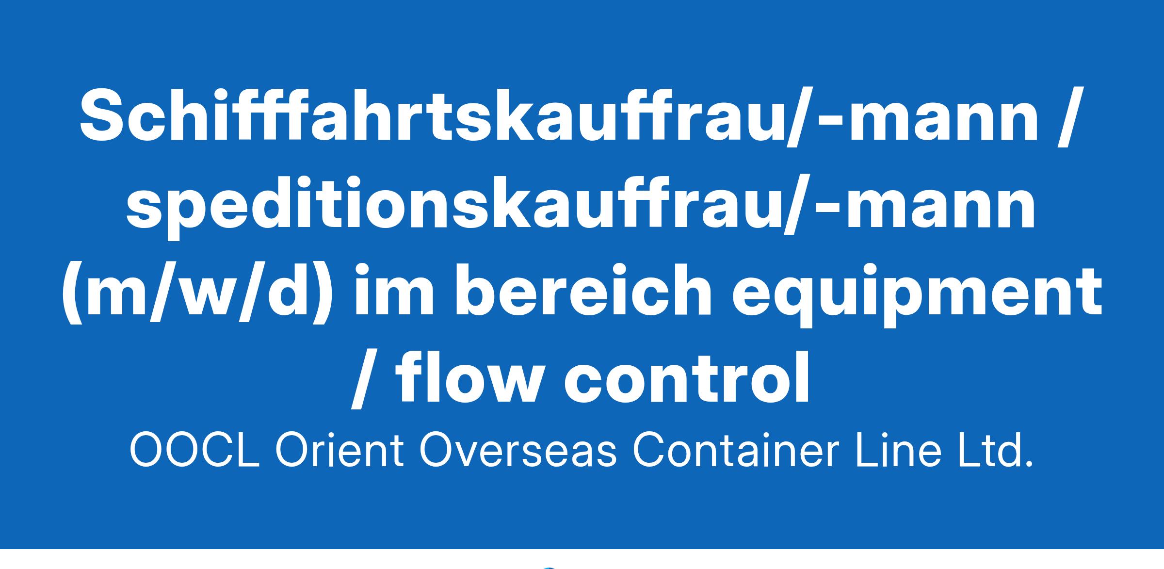 OOCL - Orient Overseas Container Line Ltd. -- Schifffahrtskauffrau/-mann / Speditionskauffrau/-mann (m/w/d) im Bereich Equipment / Flow ControlUnser Team in Bremen soll verstärkt werden. Zum nächstmöglichen Termin suchen wir einen neuen Kollegen (m/w/d) im BereichEquipment – Flow ControlDas sind Ihre AufgabenSie steuern und überwachen die Containerbestände für Deutschland und angrenzende LänderSie planen und organisieren den aktuellen und zukünftigen Containerbedarf in Zusammenarbeit mit internen sowie externen StakeholdernSie planen und vergeben Aufträge zur LeercontainerdispositionDas bringen Sie mitTeamgeist, Einsatzbereitschaft sowie proaktives und selbstständiges Arbeiteneine fundierte Ausbildung im Bereich Schifffahrt oder Spedition oder eine vergleichbare Qualifikationgern einige Jahre relevante Berufserfahrungeinen aufgeschlossenen Umgang mit neuester Softwaregute Deutsch- und Englischkenntnisse in Wort und SchriftFreude an der Zusammenarbeit mit Kollegen, Kunden und GeschäftspartnernDas bieten wir Ihneneine unbefristete Anstellung in Vollzeiteine interessante und eigenverantwortliche Tätigkeit in einem engagierten und kollegialen Teameine marktorientierte, branchenübliche Vergütung zuzüglich attraktiver Zusatzleistungen wie betriebliche Altersvorsorge und vermögenswirksame Leistungenflache Hierarchien und kurze Entscheidungswegeflexible Arbeitszeitendie Möglichkeit, bis zu zwei Tage pro Woche mobil von Zuhause zu arbeiteneinen attraktiven Standort im Herzen Bremens mit sehr guter Anbindung an den öffentlichen NahverkehrWenn wir Ihr Interesse geweckt haben, senden Sie bitte Ihre aussagefähigen Bewerbungsunterlagen (bevorzugt per E-Mail an ) an die Leitung der Personalabteilung, Frau Marion Mahler.Wir sind eines der weltgrößten Schifffahrts- und Logistikunternehmen mit Hauptsitz in Hongkong. Mit über 200 wöchentlichen Liniendiensten verbinden wir Kontinente und bieten Transporte in alle wichtigen Handels- und Wirtschaftsräume. OOCL hat international einen sehr guten Ruf.Kundenorientierte Lösungen, hochwertige Dienstleistungen und kontinuierliche Innovationen sind unsere Stärken. Wir wissen, dass unser Erfolg von unseren Mitarbeiterinnen und Mitarbeitern abhängt. Fairness, der respektvolle Umgang miteinander und eine offene Kommunikation nehmen daher einen hohen Stellenwert in unserer Firmenphilosophie ein. Als Arbeitgeber stehen wir für Chancengleichheit und kulturelle Vielfalt. Wir investieren in unsere Mitarbeiterinnen und Mitarbeiter, denn sie sind unser größtes Kapital.Orient Overseas Container Line Ltd. Zweigniederlassung DeutschlandMarion MahlerAm Wall 15728195 BremenTel.: E-Mail:www.oocl.com
