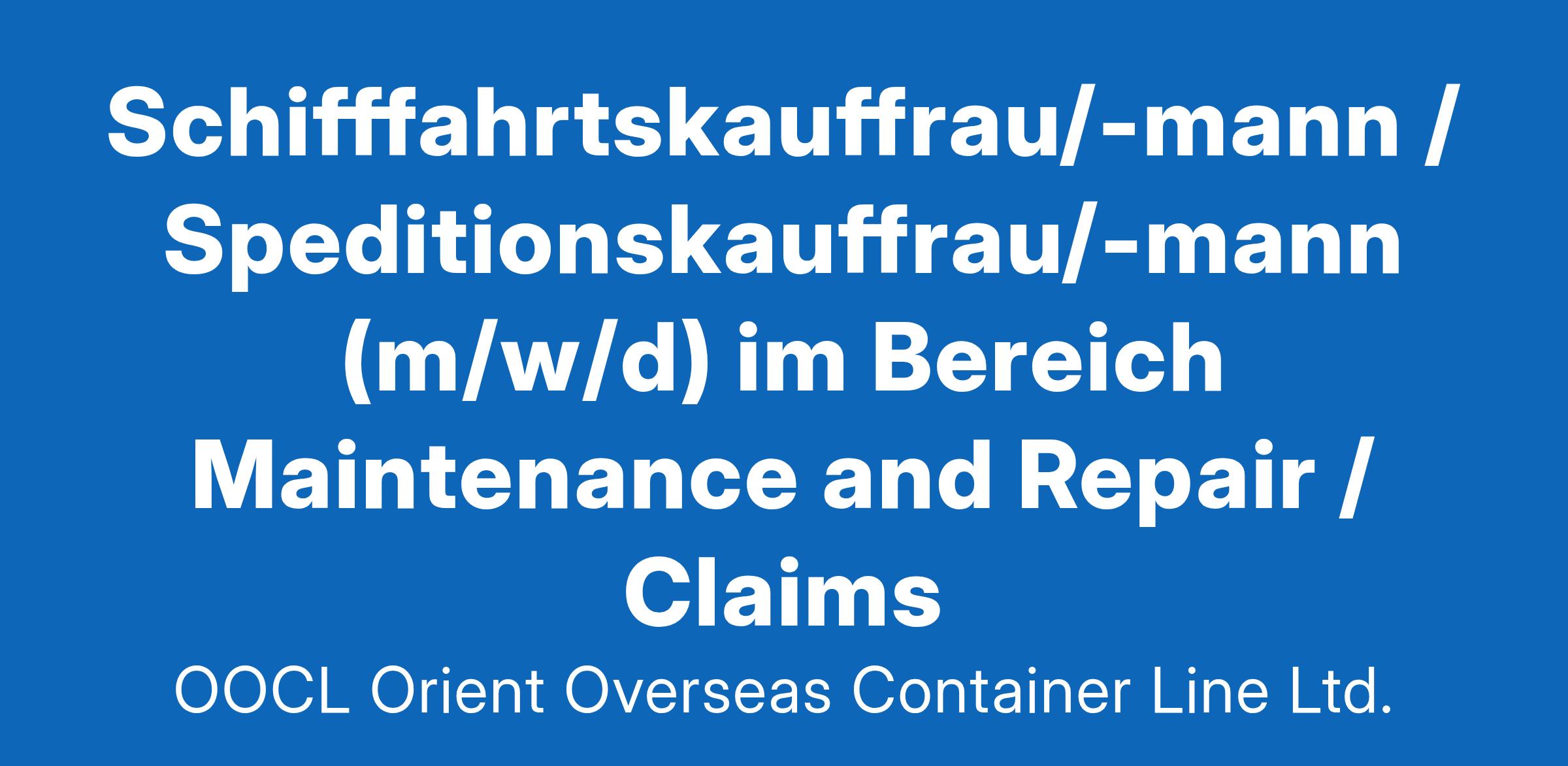 OOCL - Orient Overseas Container Line Ltd. -- Schifffahrtskauffrau/-mann / Speditionskauffrau/-mann (m/w/d) im Bereich Maintenance and Repair / Claims