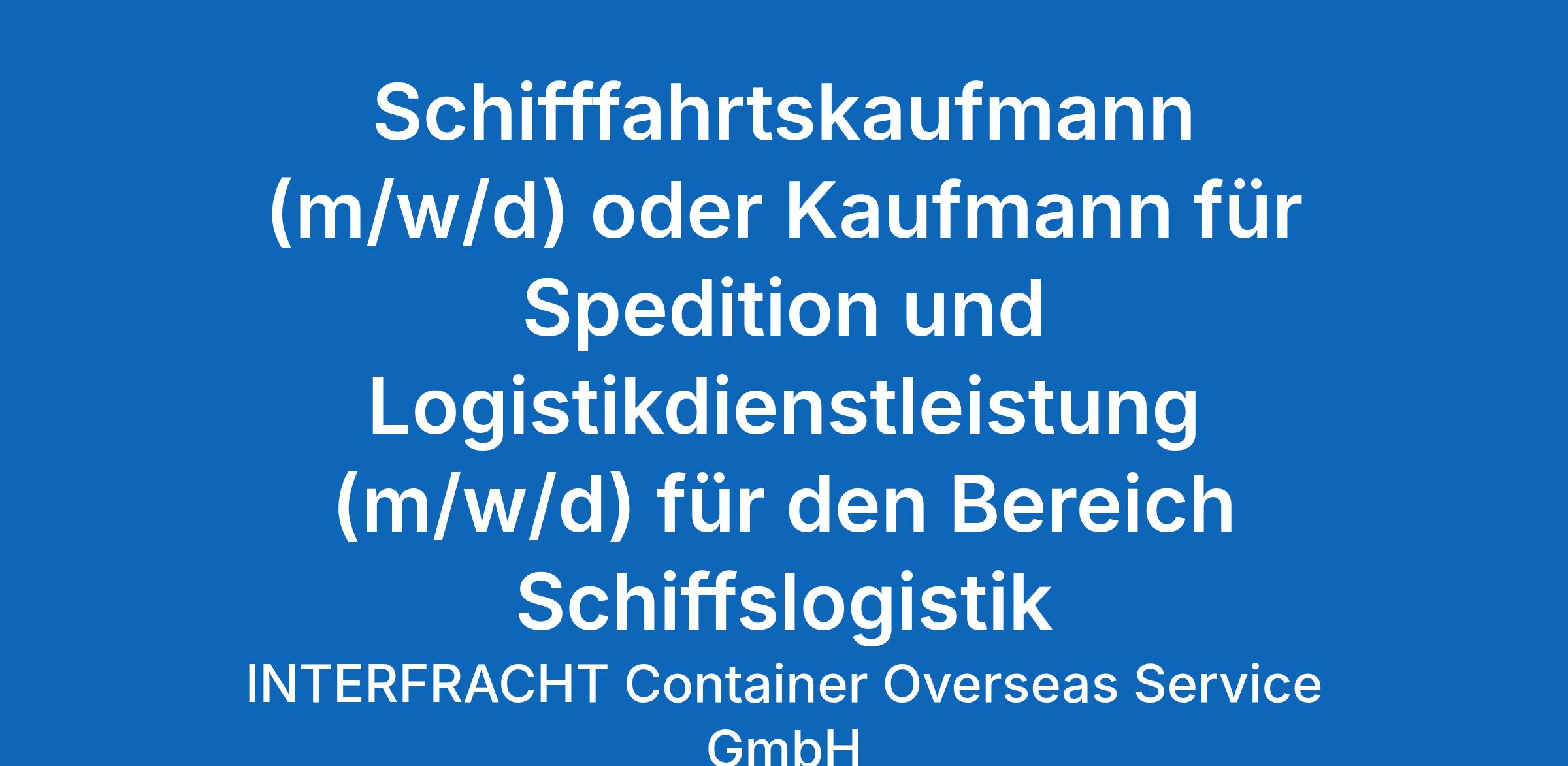 - Abgeschlossene Berufsausbildung zum Schifffahrtskaufmann (m/w/d) oder Kaufmann (m/w/d) für Spedition und Logistikdienstleistung oder vergleichbare Ausbildung