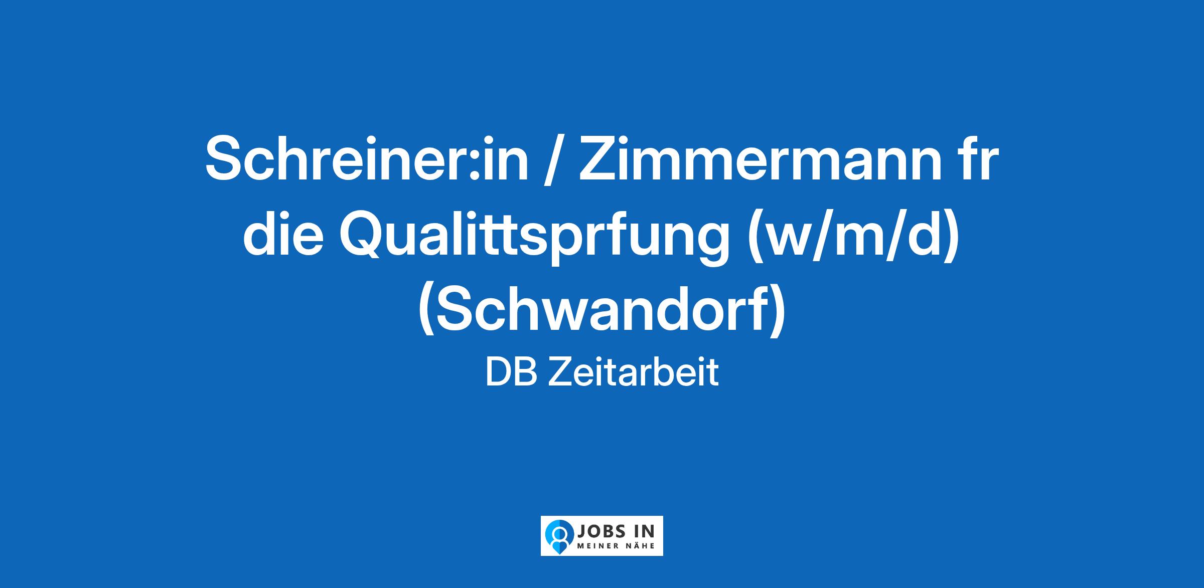 Zum nchstmglichen Zeitpunkt suchen wir dich als Zeitarbeitnehmer:in im Auftrag der DB InfraGO AG fr einen Einsatz als Schreiner:in / Zimmermann fr die Qualittsprfung (w/m/d) fr den Standort Schwandorf. Als Zeitarbeitnehmer:in erbringst du deine Arbeitsleistung direkt vor Ort im genannten Geschftsfeld, whrend du dein Arbeitsverhltnis mit uns, der DB Zeitarbeit, abschliet.