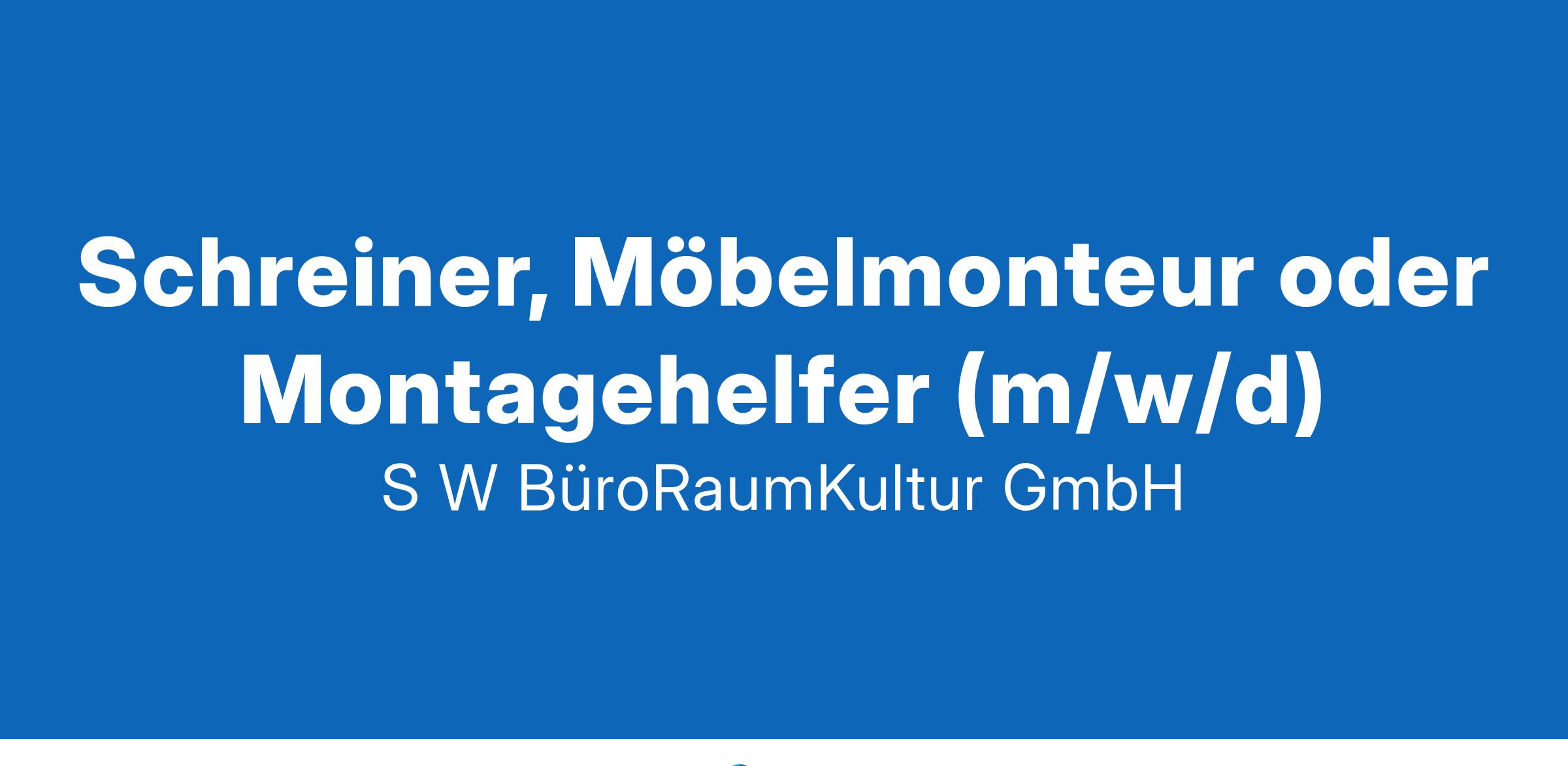 suchen wir zum nächstmöglichen Zeitpunkt Schreiner/Möbelmonteure/ Montagehelfer (m/w/d) IHR AUFGABENGEBIET: Sie unterstützen uns in den Bereichen Möbel vertragen, auspacken und nach Plan montieren. Auch die Montage von Sonderanfertigungen und Küchen