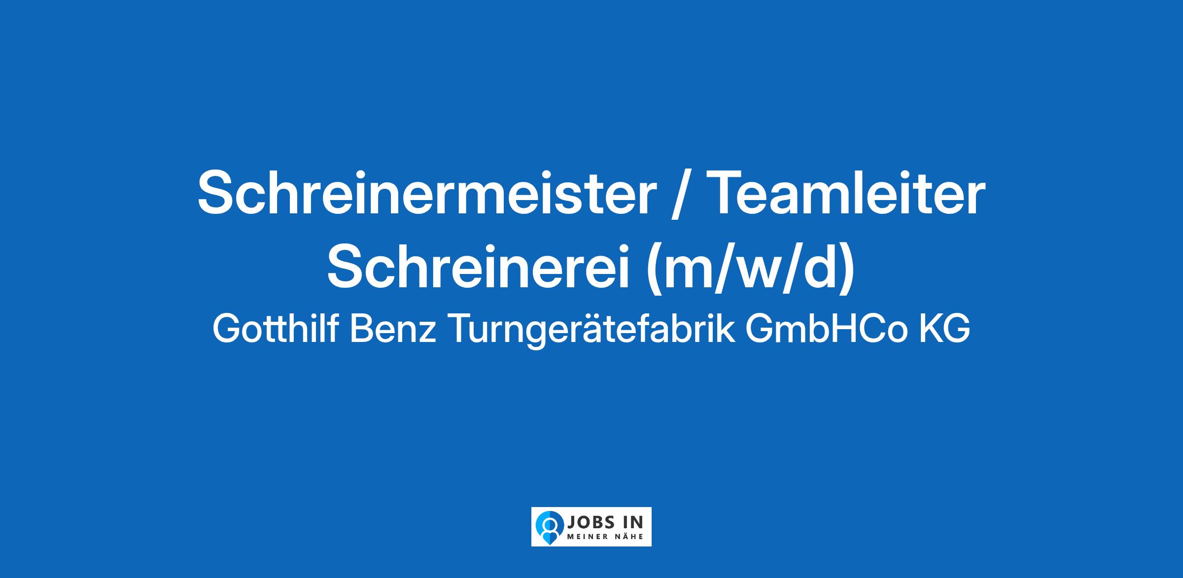 Die Gotthilf Benz Turngerätefabrik GmbH + Co. KG mit Sitz in Winnenden ist Vollsortimenter für Sportstätten jeder Art, einer der führenden Turn- und Sportgerätehersteller weltweit und steht für höchste Qualität und Fachkompetenz. Über 110 Jahre BENZ - die Erfolgsgeschichte eines Unternehmens, bei... Produktionsarbeit;Serienfertigung;Praxisorientiert;Führung;Bauholzarbeiten;Montagearbeiten;CNC-Programmierung;Abteilungsleitung;Herstellung;Sportausrüstung;Kommunikation Original Stellenanzeige auf StepStone.de – Jetzt Jobagent bei StepStone einrichten und Traumjob finden! https://bit.ly/2KOagYD Mehr Informationen zu Arbeitgebern, Gehaltsdaten und Karrieretipps finden Sie auf StepStone.de