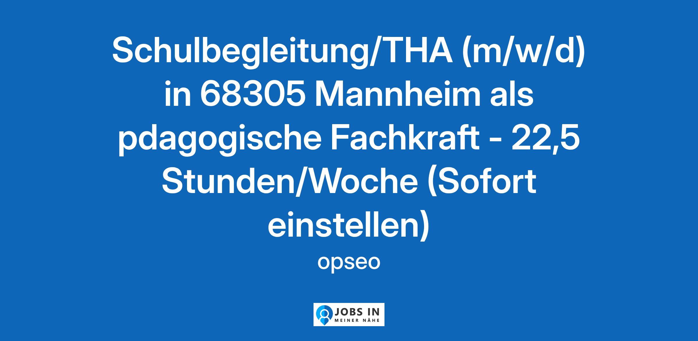 Schulbegleitung/THA (m/w/d) in 68305 Mannheim als pdagogische Fachkraft - 22,5 Stunden/Woche (Sofort einstellen)