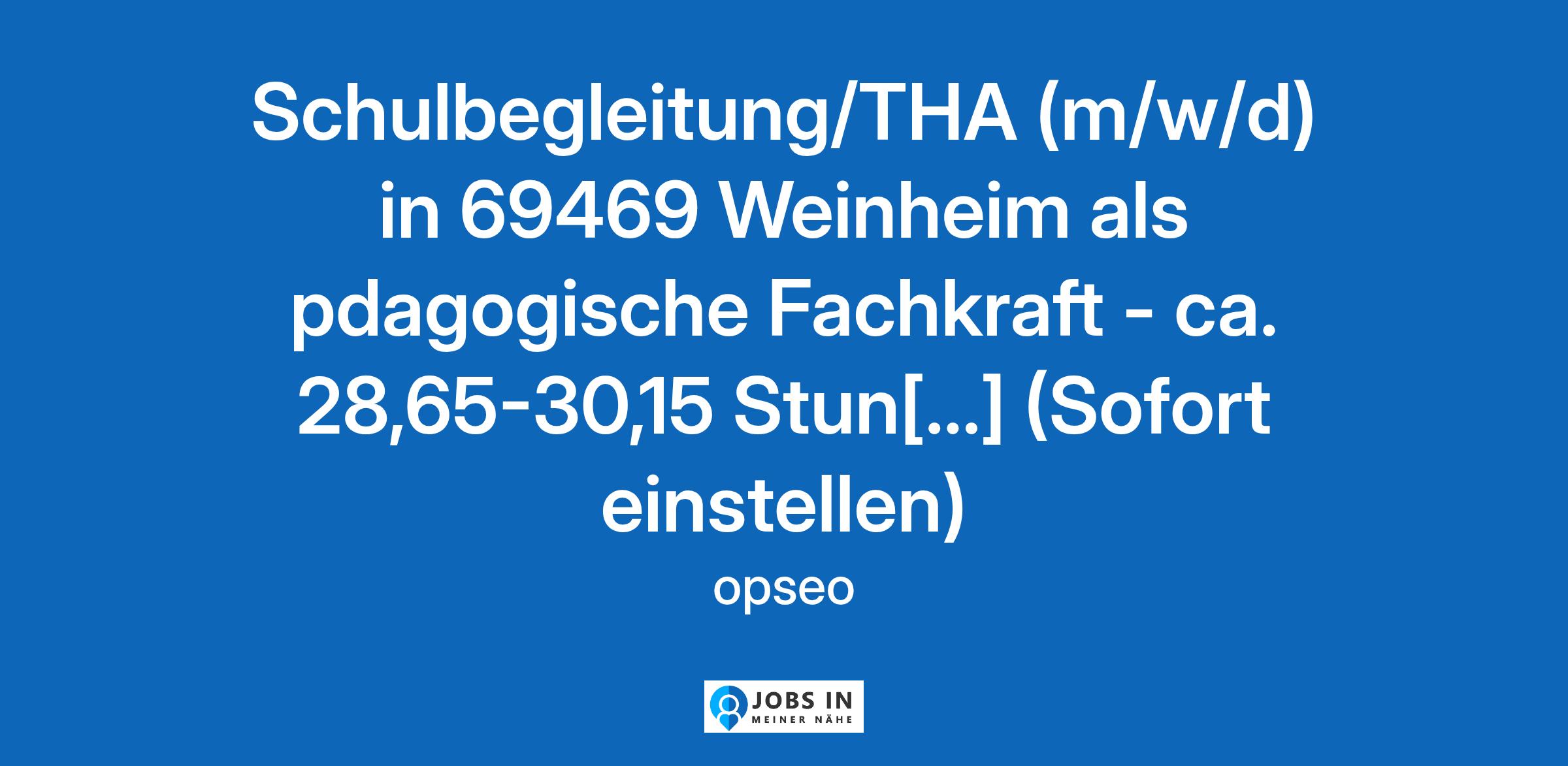Zum nchstmglichen Zeitpunkt suchen wir in 69469 Weinheim an der Maria-Montessori-Schule eine Schulbegleitung (m/w/d).