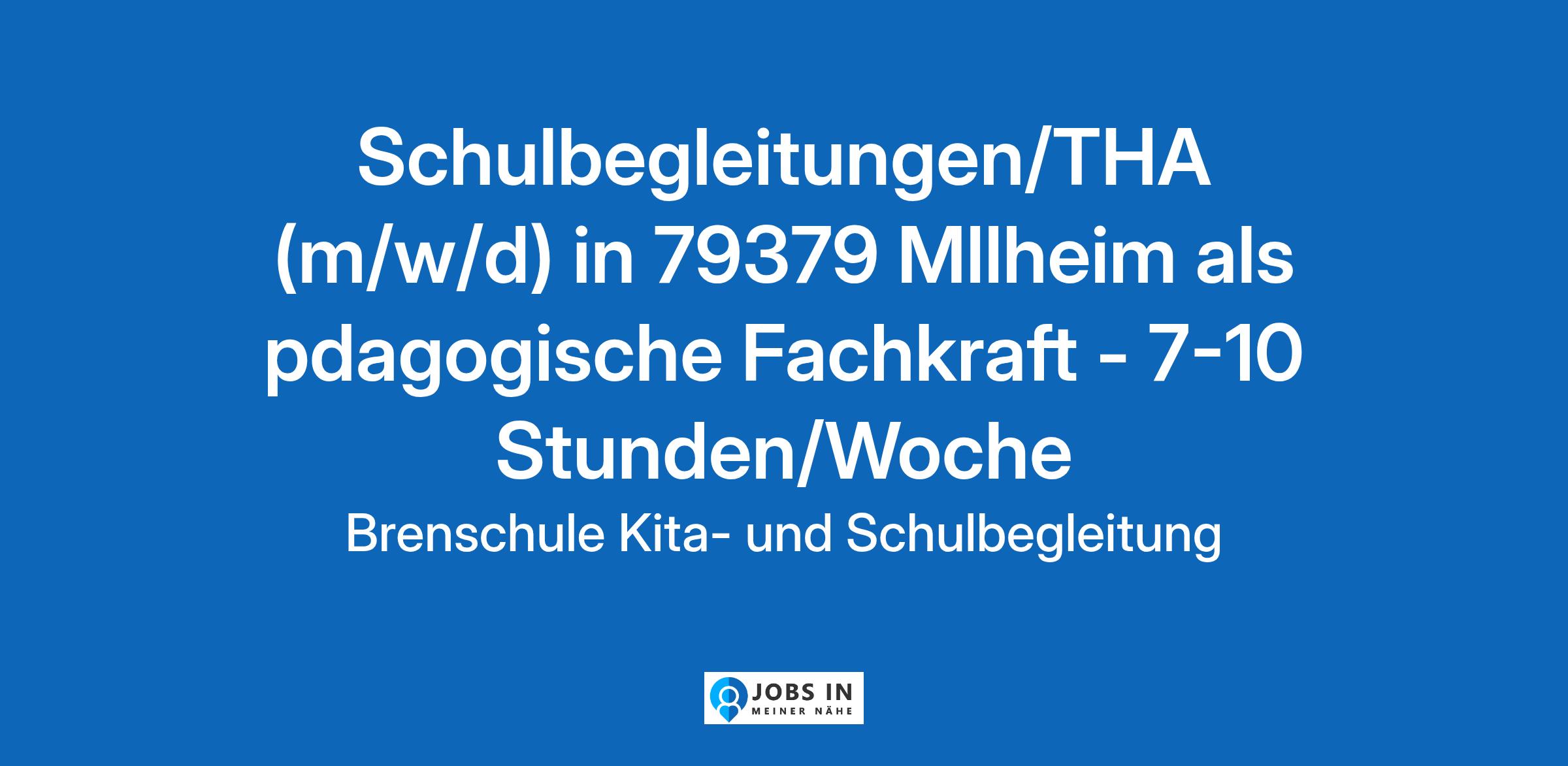 Get notified about new Schulbegleitungen/THA (m/w/d) in 79379 Mllheim als pdagogische Fachkraft - 7-10 Stunden/Woche jobs in Mllheim, Baden-Wrttemberg, Germany .