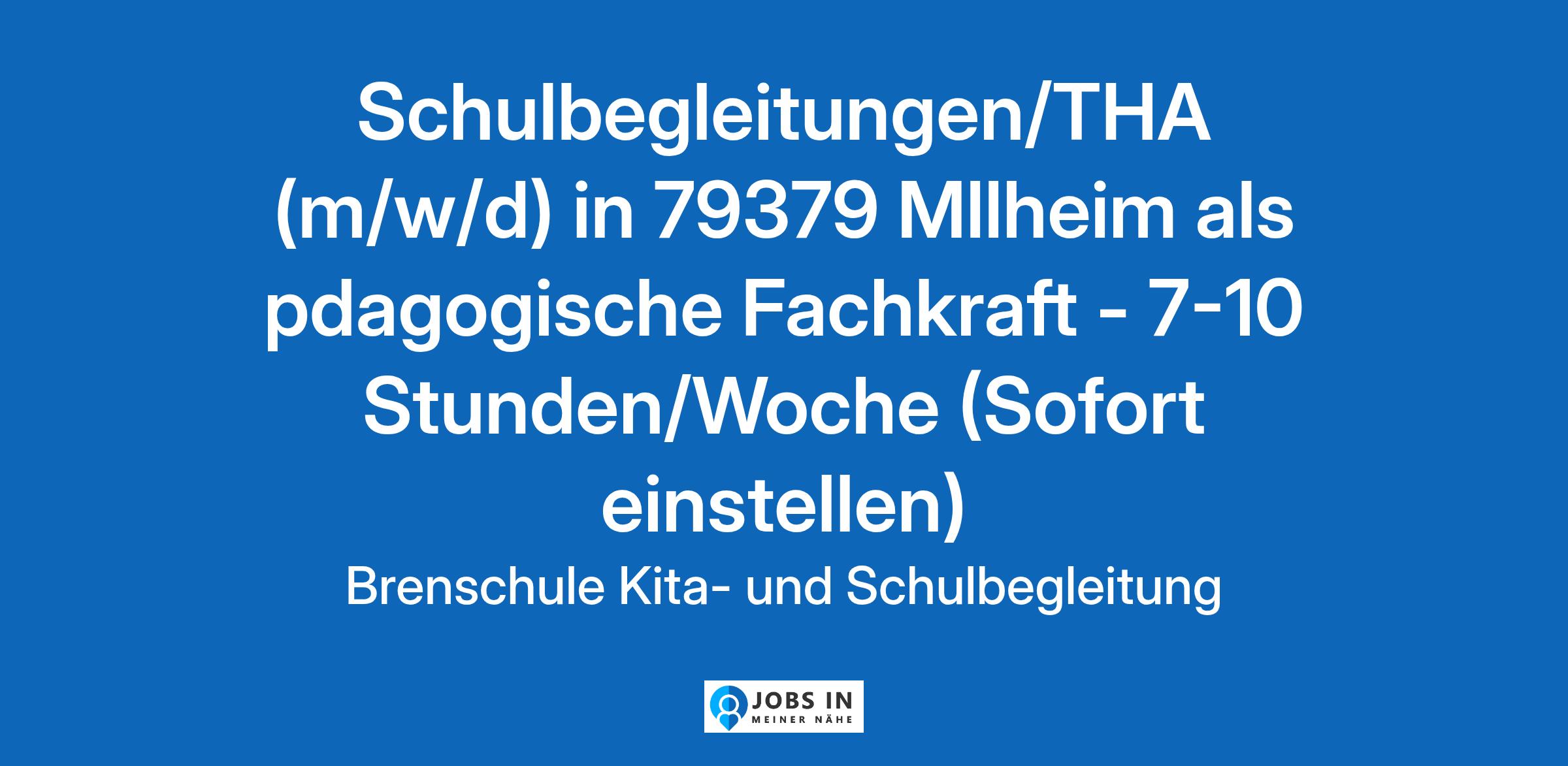 Get notified about new Schulbegleitungen/THA (m/w/d) in 79379 Mllheim als pdagogische Fachkraft - 7-10 Stunden/Woche jobs in Mllheim, Baden-Wrttemberg, Germany .