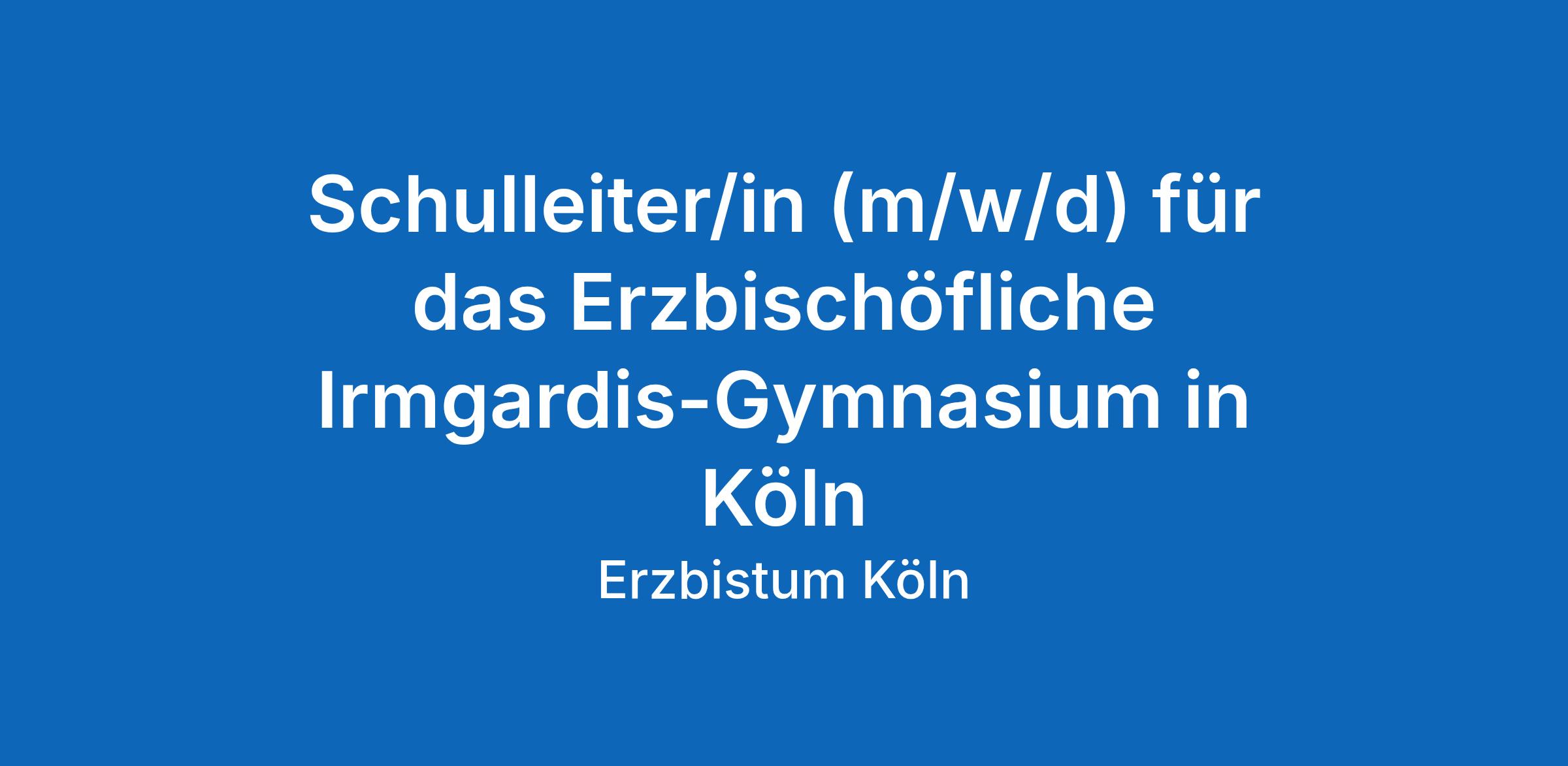 Das Erzbistum Köln sucht für das Erzbischöfliche Irmgardis-Gymnasium in Köln zum 01. Februar 2027 eine/n