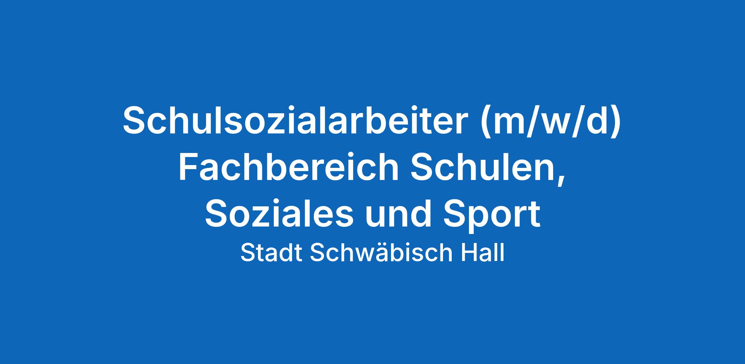 Die Große Kreisstadt Schwäbisch Hall (ca. 43.000 Einwohner) zeichnet sich durch eine hohe Lebens- und Wohnqualität sowie überregional ausstrahlende Kultur- und Bildungseinrichtungen und ein vielfältiges Freizeitangebot aus. Beim Fachbereich Schulen, Soziales und Sport ist zum 1. Oktober 2026 folgende Stelle zu besetzen: