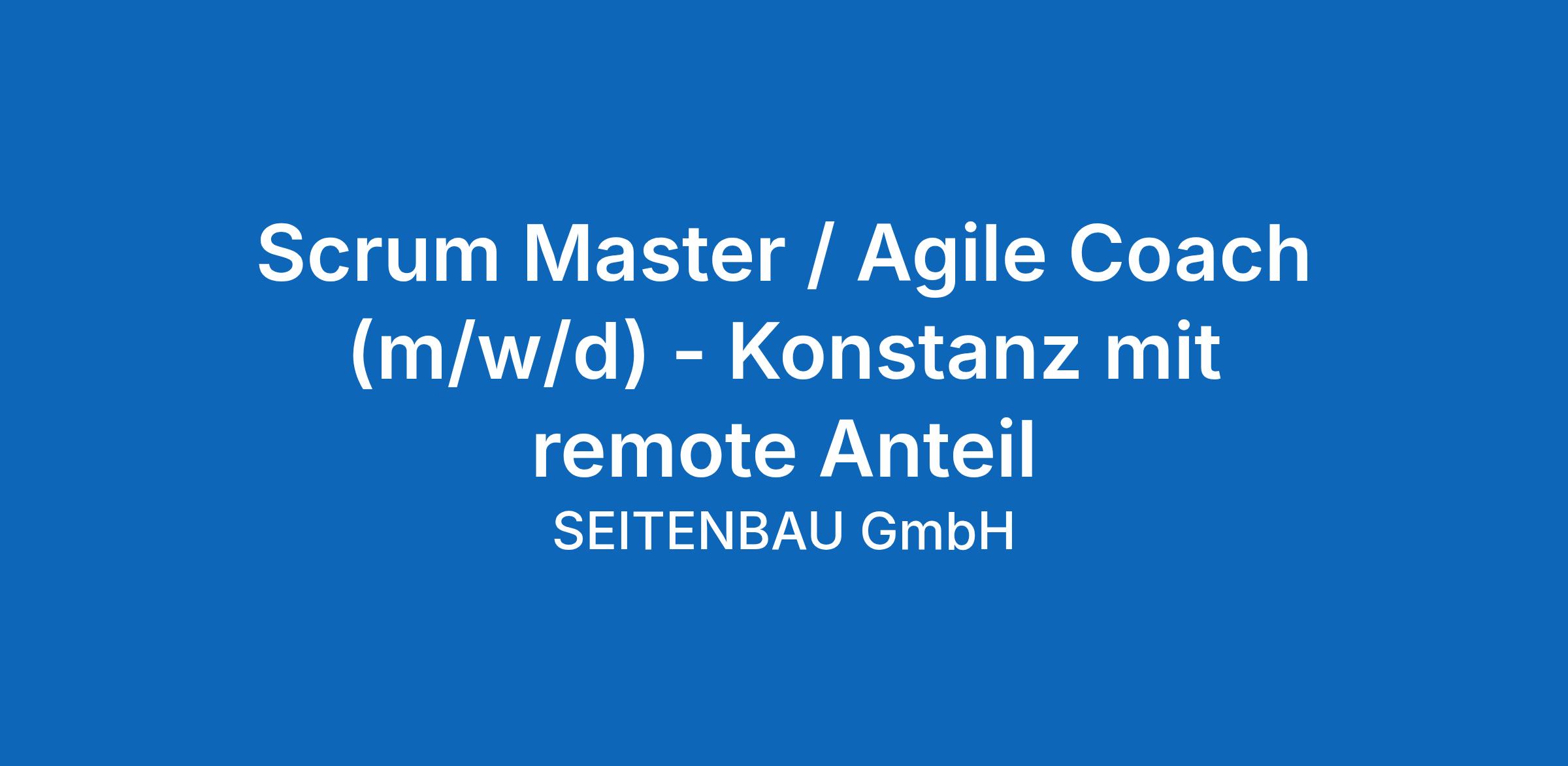 Scrum Master / Agile Coach (m/w/d) - Konstanz mit remote Anteil