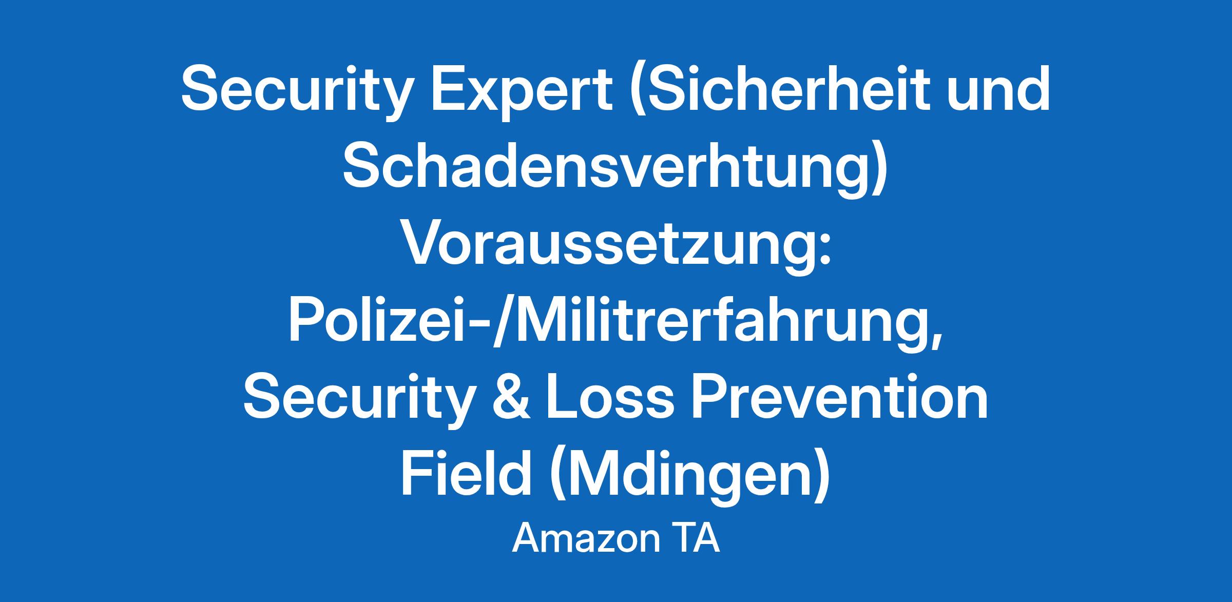 Security Expert (Sicherheit und Schadensverhtung) Voraussetzung: Polizei-/Militrerfahrung, Security & Loss Prevention Field (Mdingen)