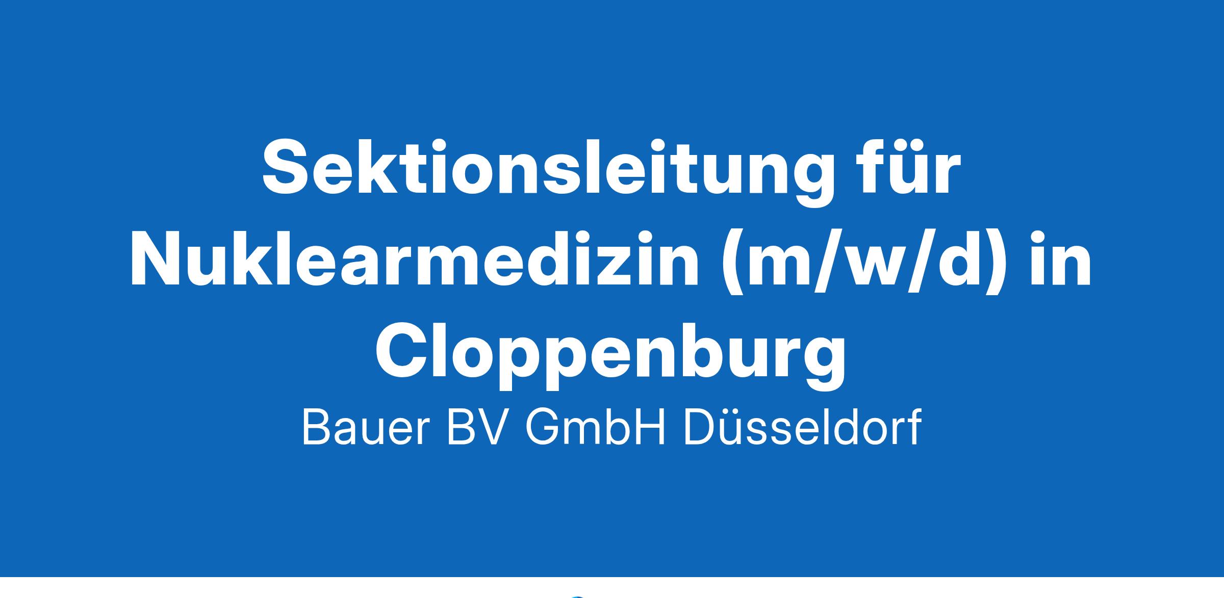 Anstellungsart(en): VollzeitIhr neuer Arbeitsplatz:Akademisches Lehrkrankenhaus mit rund 500 Betten im Raum Cloppenburg. In der nuklearmedizinischen Abteilung wird das gesamte Spektrum der bildgebenden nuklearmedizinischen Diagnostik angeboten. Ein Schwerpunkt der Abteilung ist die Hybrid-Bildgebung mit der Fusion der funktionellen nuklearmedizinischen Bildern mit den morphologischen Bildern der Röntgentechnik.Ihre Vorteile:Interessante und abwechslungsreiche TätigkeitOrganisation von stationären und ambulanten ProzessabläufenVersorgung von stationären und ambulanten Patienten mit interventionell-therapeutischen VerfahrenMitgestaltung und Weiterentwicklung der AbteilungModerne Praxisräumlichkeiten mit breitem SpektrumBreite technische AusstattungCT, MRT, Röntgen, Mammographie, PET-CT, SPECT-fähige DoppelkopfkameraKeine Dienste an Sonn- und FeiertagenUmfangreiches Fort- und WeiterbildungsangebotAttraktive VergütungUnbefristete FestanstellungIhr Profil:Facharzt für Nuklearmedizin (m/w/d)Kommunikationsvermögen, Teamfähigkeit und OrganisationsgeschickInteresse an der Mitgestaltung moderner Arbeits- und PraxisabläufeIhr Ansprechpartner:Bauer B+V Personalberatung