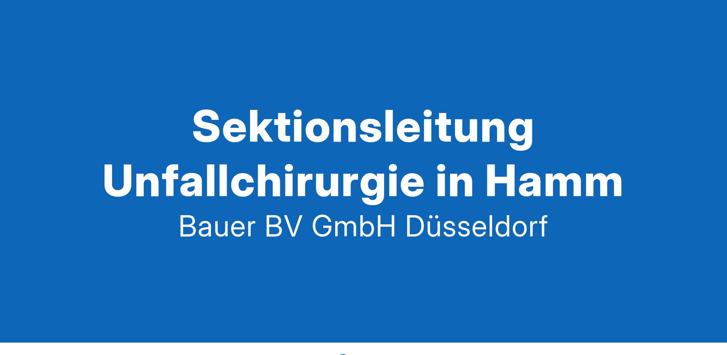 Beschäftigungsbeginn: Jetzt bewerbenIhr neuer Arbeitsplatz:Akademisches Lehrkrankenhaus mit rund 650 Betten in der Region Hamm. Die Sektion Unfallchirurgie versorgt rund 14.000 Patienten pro Jahr. Das Operationsspektrum umfasst alle modernen Verfahren der Unfallchirurgie inkl. minimalinvasiver arthroskopischer Verfahren. Alle Verfahren der akuten und wiederherstellenden Knochenbruchbehandlung mit Titanimplantaten gewebeschonend operativ kommen zur Anwendung.Ihre Vorteile:Ärztliche und fachliche Leitung der Sektion UnfallchirurgieGroße Gestaltungsmöglichkeiten bei der Weiterentwicklung der SektionUmfangreiche interne und externe Fort- und WeiterbildungsmöglichkeitenSystematische Förderung von LeitungskräftenAttraktive Vergütung inkl. betrieblicher AltersversorgungUnbefristete AnstellungIhr Profil:Facharzt für Orthopädie und Unfallchirurgie (m/w/d)Zusatzbezeichnung Spezielle UnfallchirurgieGroße unfallchirurgische ExpertiseBereitschaft zur interdisziplinären ZusammenarbeitBetriebswirtschaftliche KenntnisseIhr Ansprechpartner:Bauer B+V Personalberatung
