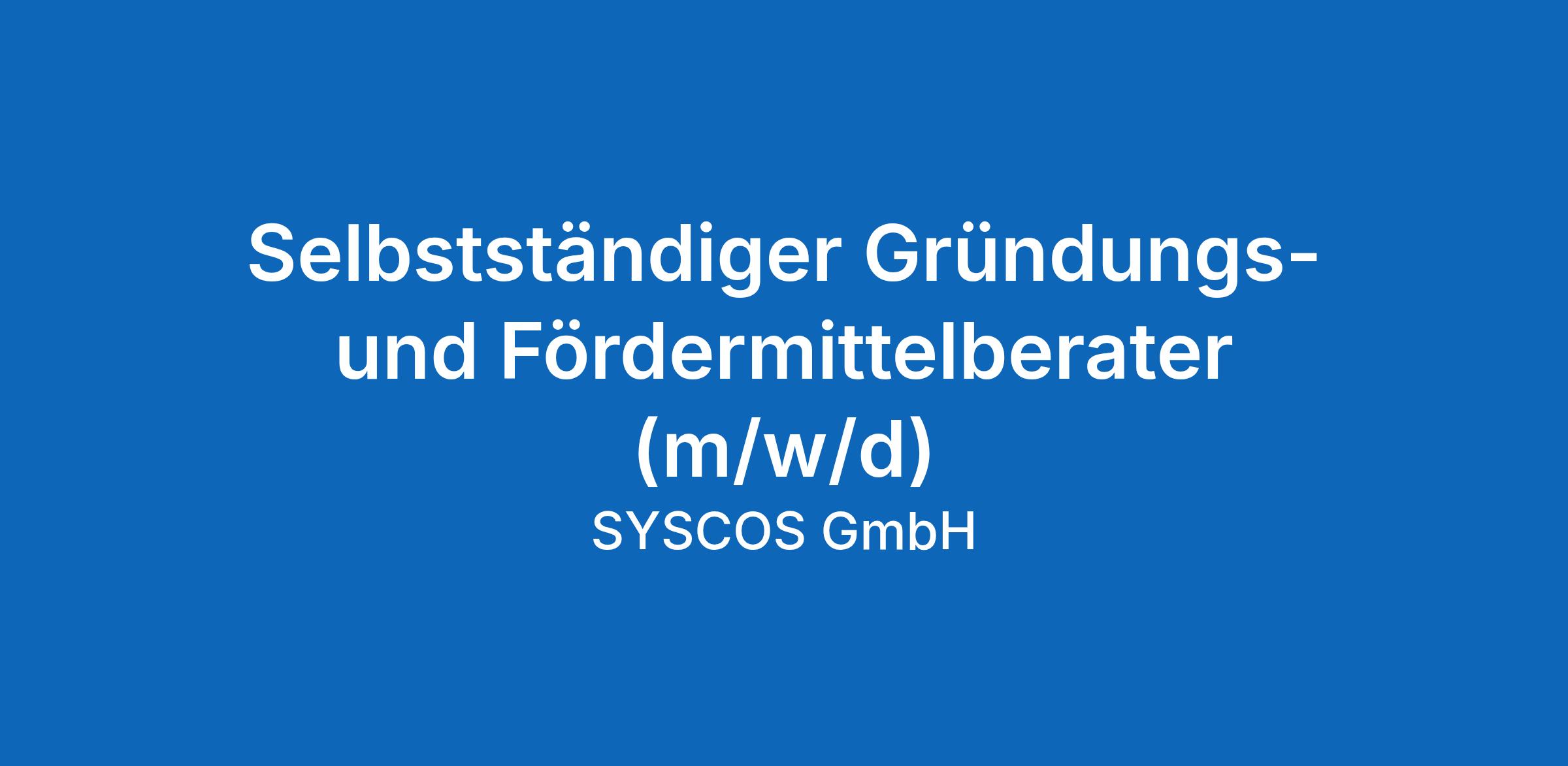 Für unseren Mandanten SYSCOS, suchen wir bundesweit selbstständige Partner für die Gründungs- und Fördermittelberatung.