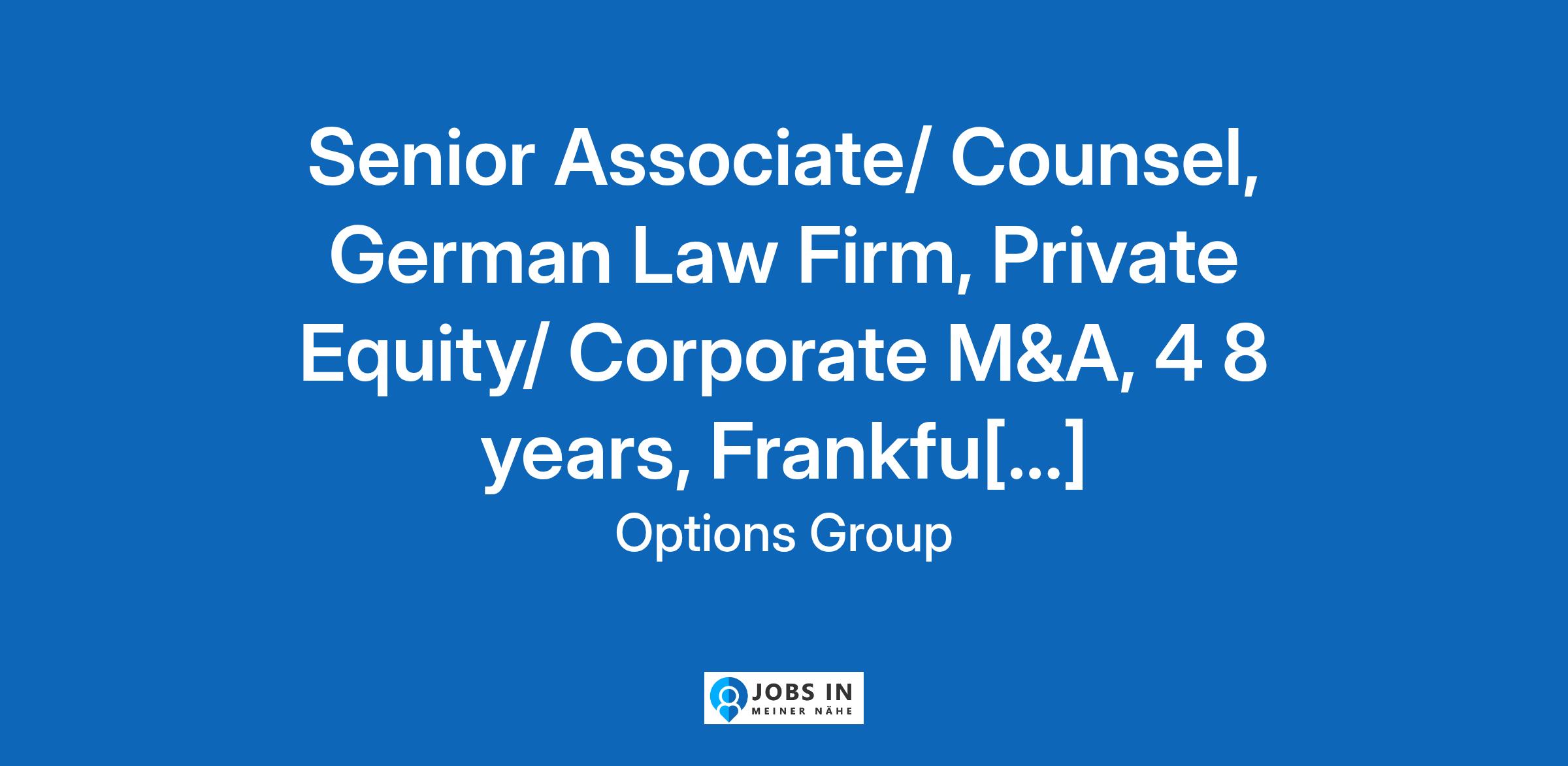 Senior Associate/ Counsel, German Law Firm, Private Equity/ Corporate M&A, 4 8 years, Frankfurt, Cologne, Germany