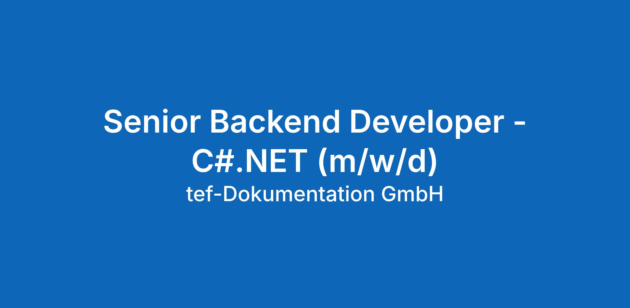 Senior Backend Developer – C#.NET (m/w/d) für unsere Kunden in der Freizeitbranche