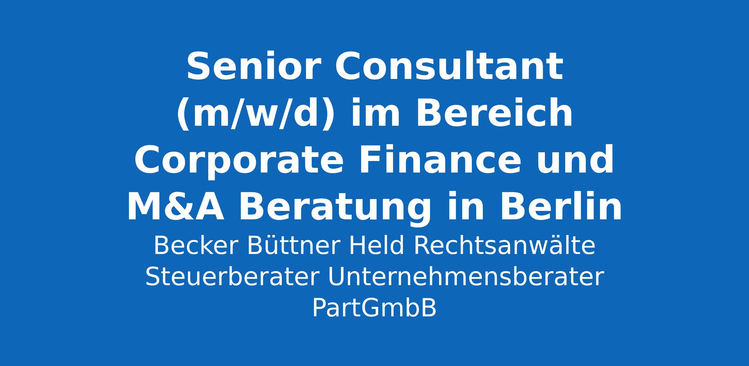 SENIOR CONSULTANT (M/W/D) IM BEREICH CORPORATE FINANCE UND M&A BERATUNG