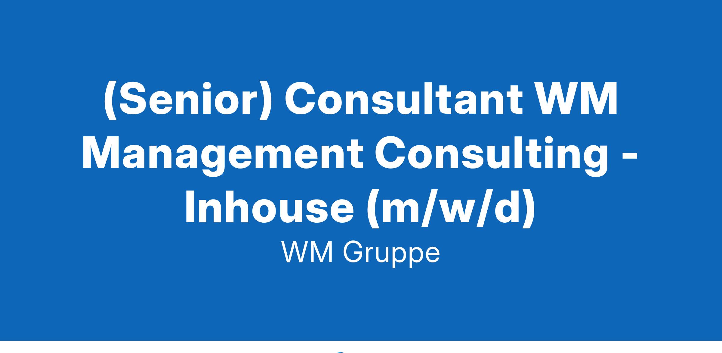 (Senior) Consultant WM Management Consulting - Inhouse (m/w/d)