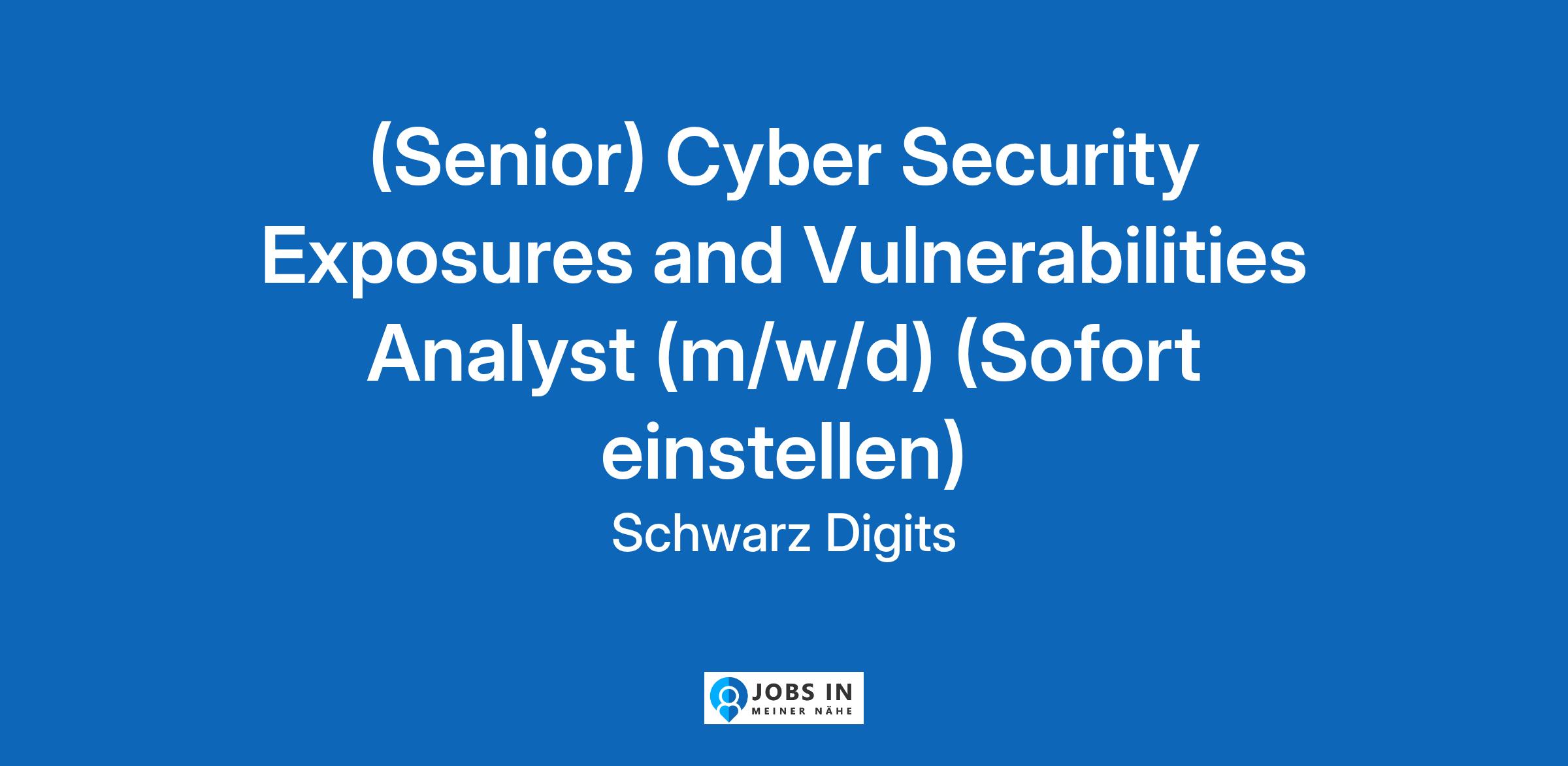 (Senior) Cyber Security Exposures and Vulnerabilities Analyst (m/w/d) (Sofort einstellen)