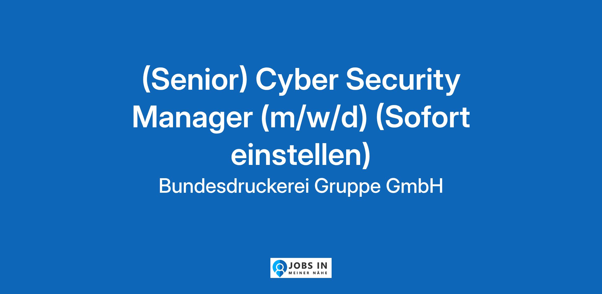 Zum nchstmglichen Zeitpunkt suchen wir Sie als (Senior) Cyber Security Manager fr den Standort Berlin.