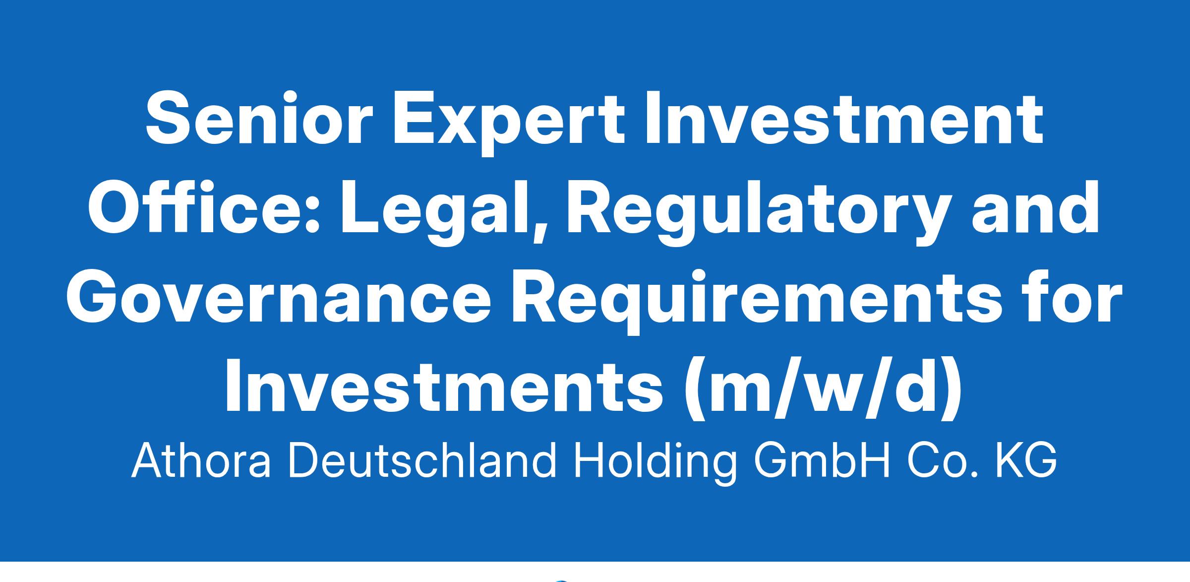 Senior Expert Investment Office: Legal, Regulatory and Governance Requirements for Investments (m/w/d)