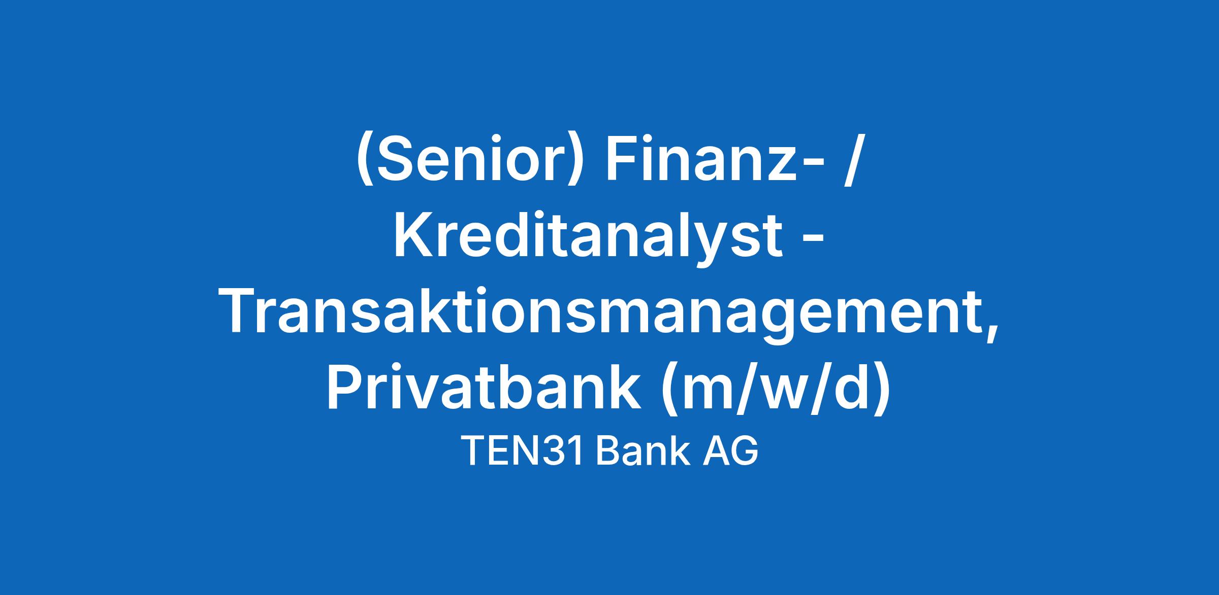 (Senior) Finanz- / Kreditanalyst – Transaktionsmanagement, Privatbank (m/w/d)