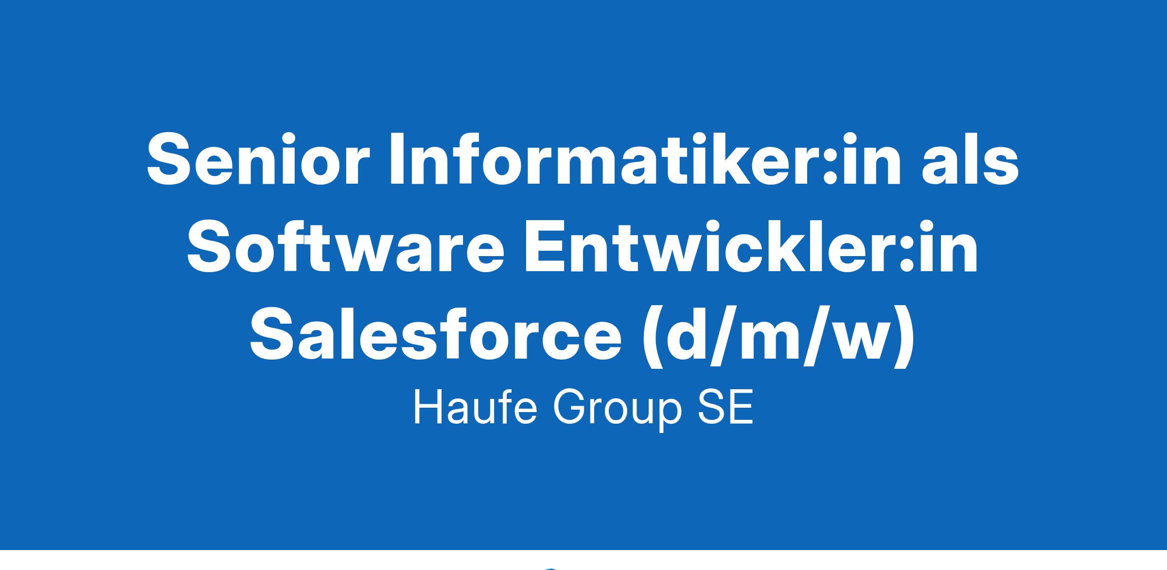 DAS BRINGST DU MIT: Du hast bereits mehrjährige Erfahrung in der Entwicklung mit Salesforce gesammelt und ein erfolgreicher Track Record zeichnet dich aus Du bist sicher im Umgang mit Apex, Visualforce, Lightning und verwandten Technologien Du kannst technische Konzepte sowohl technischen als auch nicht-technischen Zielgruppen nahebringen Idealerweise hast du bereits Projektteams geleitet und bist mit der Zusammenarbeit verschiedener Stakeholder vertraut Selbstständiges Arbeiten und ein gutes Zeitmanagement gehört zu deinen Stärken Wissen in agilen Methoden wie Scrum oder Kanban ist von Vorteil Sehr gute Deutschkenntnisse (mind. B2) und gute Englischkenntnisse runden dein Profil ab DAS BIETEN WIR DIR: In der Haufe Group schaffen wir wegweisende Arbeitsbedingungen, in denen sich jede:r von uns optimal einbringen und entfalten kann. Bei uns erhältst du Raum und Verantwortung, arbeitest hybrid mit flexiblen Arbeitszeiten und hast vielfältige Weiterbildungs- und Entwicklungsmöglichkeiten. Wir sind erlebbar und ganz offiziell ein Great Place to Work.