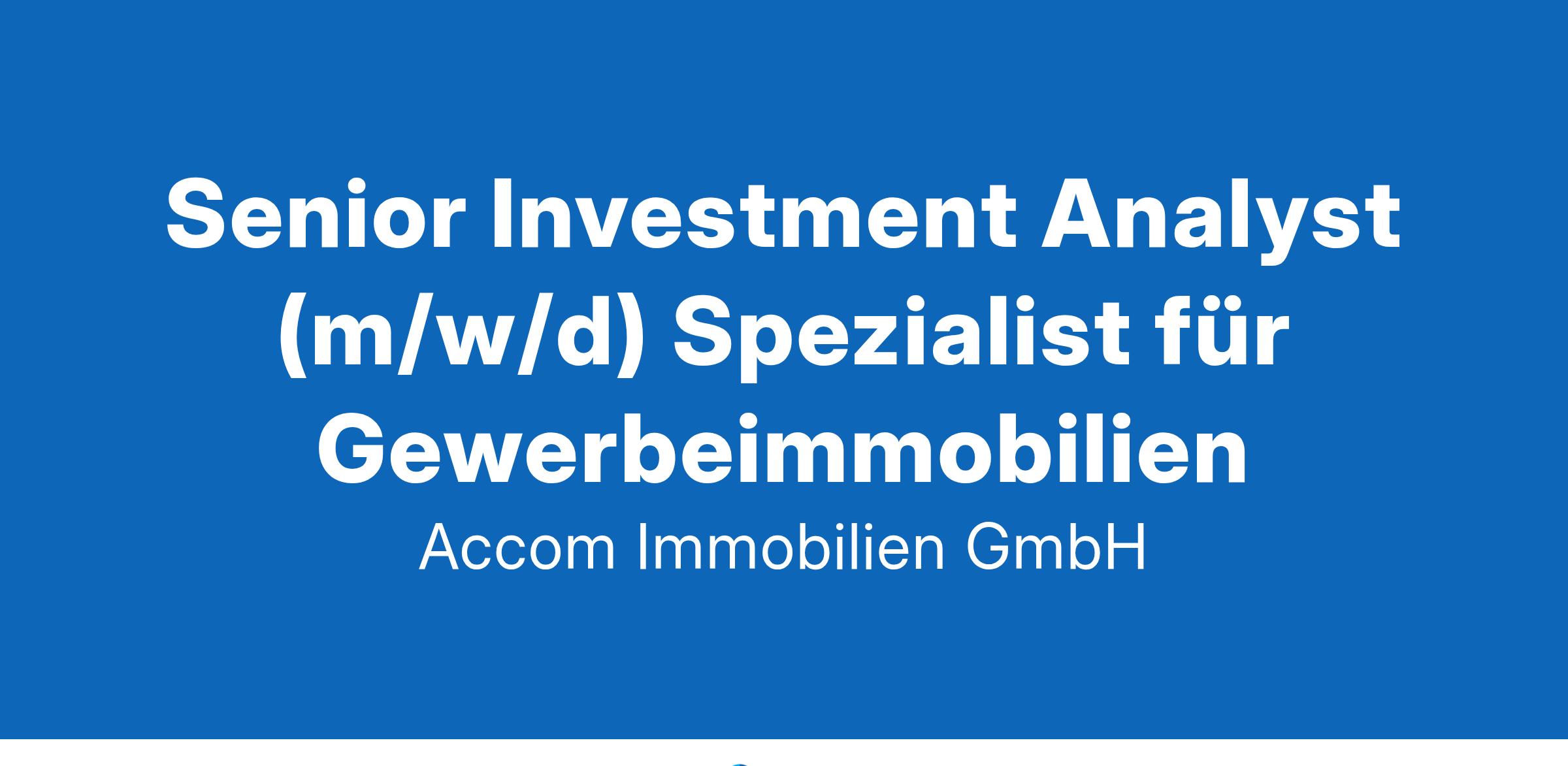 Senior Investment Analyst (m/w/d) in Vollzeit Spezialist für Gewerbeimmobilien München Vollzeit Die Accom Gruppe ist ein inhabergeführtes Münchner Immobilienunternehmen mit Fokus auf deutsche Gewerbeimmobilien. Wir übernehmen für unsere Kunden die sorgfältige Prüfung, die qualifizierte Beurteilung und das proaktive Management von Immobilien – in sämtlichen Einzeldisziplinen, deutschlandweit und seit vielen Jahrzehnten. Wir bauen unser Portfolio in Deutschland kontinuierlich mit Einzelobjekten und auch Portfolien, die i.d.R. ein Value-Add Potenzial besitzen, aus. Ein Schwerpunkt unserer Tätigkeit ist, mit der Umsetzung einer Value-Add-Strategie das Potenzial einer Immobilie zu heben. Wir suchen für unseren Standort München zum nächstmöglichen Zeitpunkt einen Senior Investment Analyst (m/w/d) in Vollzeit Spezialist für Gewerbeimmobilien Ihre Aufgabenbereiche Fokus: Prüfung von Finanzierungen und Finanzierung von Immobilienprojekten und Portfolien Erstellung und Begleitung von Finanzierungsanfragen Durchführung von Recherche, Prüfung und Analyse wirtschaftlich relevanter Kennzahlen im Rahmen von Immobilientransaktionen. Erstellung von CF- und DCF-Kalkulationen zur Bewertung von Immobilieninvestitionen Entwicklung und Bewertung von verschiedenen Investment-Szenarien für Cashflow Projektionen Research und Beobachtung des Miet- und Transaktionsgeschehens in regionalen und nationalen Immobilienmärkten Analyse von marktweiten Stressszenarien Zusammenfassen und Ableitung von aussagekräftigen Investment Empfehlungen Konzeption von Markt- und Prognoseberichten Erstellung von Präsentationen sowie Aufbereitung von Argumentationsmaterial Erstellung komplexer betriebswirtschaftlicher Analysen/Berichte mit dem Ziel, die finanzwirtschaftliche Situation zu erfassen und für Folgejahre zu prognostizieren Erstellung von Markt- und Wettbewerbsanalysen Prüfung von Chancen und Risiken von bestehenden / neuen Immobilienportfolien Ihr Profil: Erfolgreich abgeschlossenes Studium (Fachrichtung Immobilien, Finance, VWL) Mindestens vier Jahre Berufserfahrung in der Immobilienbranche Erfahrung in der Finanzierung von Gewerbeimmobilien Schriftlich wie mündlich exzellente kommunikative Fähigkeiten vorausgesetzt Sehr sicherer Umgang mit MS-Office Produkten, besonders Excel VBA Kenntnisse Breites Netzwerk in der Immobilienbranche (Immobilienfinanzierung) Herausragende Genauigkeit und Zahlenverständnis Verständnis für komplexe Zusammenhänge und analytisches Denken Unternehmerisches und konzeptionelles Denken, nicht nur zum nächsten, sondern weit über den übernächsten Schritt hinaus Sie wollen mitdenken und mitgestalten, nicht abarbeiten Sie sind ein Teamplayer mit Freude an Zahlen, Liebe zur Genauigkeit und Begeisterung, zukünftige Immobilientransaktionen und Projekte immer wieder aus anderen Blickwinkeln zu durchleuchten. Sehr gute Deutsch- und Englischkenntnisse in Wort und Schrift Ihr zukünftiges Umfeld: Modernes Arbeitsumfeld auf dem neusten Stand der Technik Mobiles arbeiten Flexible Arbeitszeiten Zentrale Lage Fortbildungs- und Qualifizierungsmaßnahmen Abwechslungsreiche Firmenevents Mitarbeiterangebote Corporate Benefits Möglichkeit einer Direktversicherung Attraktive leistungsbezogene Vergütung Flache Hierarchien Freundschaftlich-kollegiales Team Abwechslungsreiche Projekte an verschiedensten Immobilien in Deutschland bei dem jedes wieder anders ist als das vorausgegangene Wir schätzen Eigeninitiative sowie Engagement. Wir legen großen Wert auf einen freundlichen, aber auch ehrlichen Umgang miteinander. Respekt, Vertrauen und Verantwortung werden bei uns großgeschrieben. Ellenbogenmentalität ist uns fremd. Bei uns gewinnen die besten Argumente und Ideen und wir freuen uns auf Ihren Beitrag. Interessiert? - Dann schicken Sie uns bitte Ihre aussagekräftigen Bewerbungsunterlagen. Vergessen Sie dabei bitte nicht, Ihren frühestmöglichen Eintrittstermin sowie Ihre Gehaltsvorstellungen anzugeben. Wir freuen aus darauf, Sie kennen zu lernen. Wir freuen aus darauf, Sie kennen zu lernen. Accom Immobilien GmbH, Sophia Bacs - Leitung Personal – Bahnhofstrasse 92, 82166 Gräfelfing sophia.bacs@accom.de Kontakt Sophia Bacs sophia.bacs@accom.de Standort München Accom Immobilien GmbH Bahnhofstrasse 92 82166 Gräfelfing www.accom.de