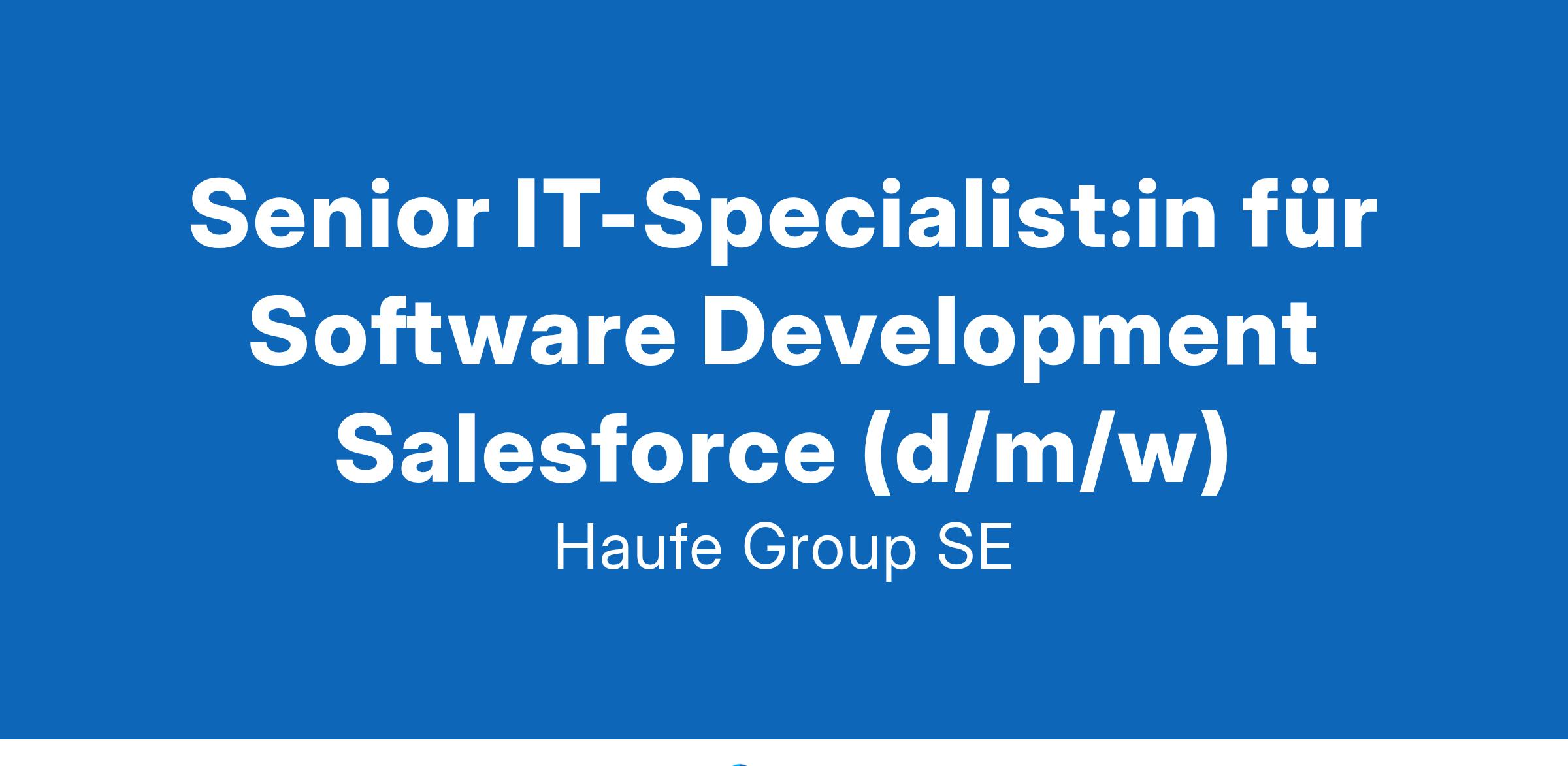 DAS BRINGST DU MIT: Du hast bereits mehrjährige Erfahrung in der Entwicklung mit Salesforce gesammelt und ein erfolgreicher Track Record zeichnet dich aus Du bist sicher im Umgang mit Apex, Visualforce, Lightning und verwandten Technologien Du kannst technische Konzepte sowohl technischen als auch nicht-technischen Zielgruppen nahebringen Idealerweise hast du bereits Projektteams geleitet und bist mit der Zusammenarbeit verschiedener Stakeholder vertraut Selbstständiges Arbeiten und ein gutes Zeitmanagement gehört zu deinen Stärken Wissen in agilen Methoden wie Scrum oder Kanban ist von Vorteil Sehr gute Deutschkenntnisse (mind. B2) und gute Englischkenntnisse runden dein Profil ab DAS BIETEN WIR DIR:In der Haufe Group schaffen wir wegweisende Arbeitsbedingungen, in denen sich jede:r von uns optimal einbringen und entfalten kann. Bei uns erhältst du Raum und Verantwortung, arbeitest hybrid mit flexiblen Arbeitszeiten und hast vielfältige Weiterbildungs- und Entwicklungsmöglichkeiten. Wir sind erlebbar und ganz offiziell ein Great Place to Work.