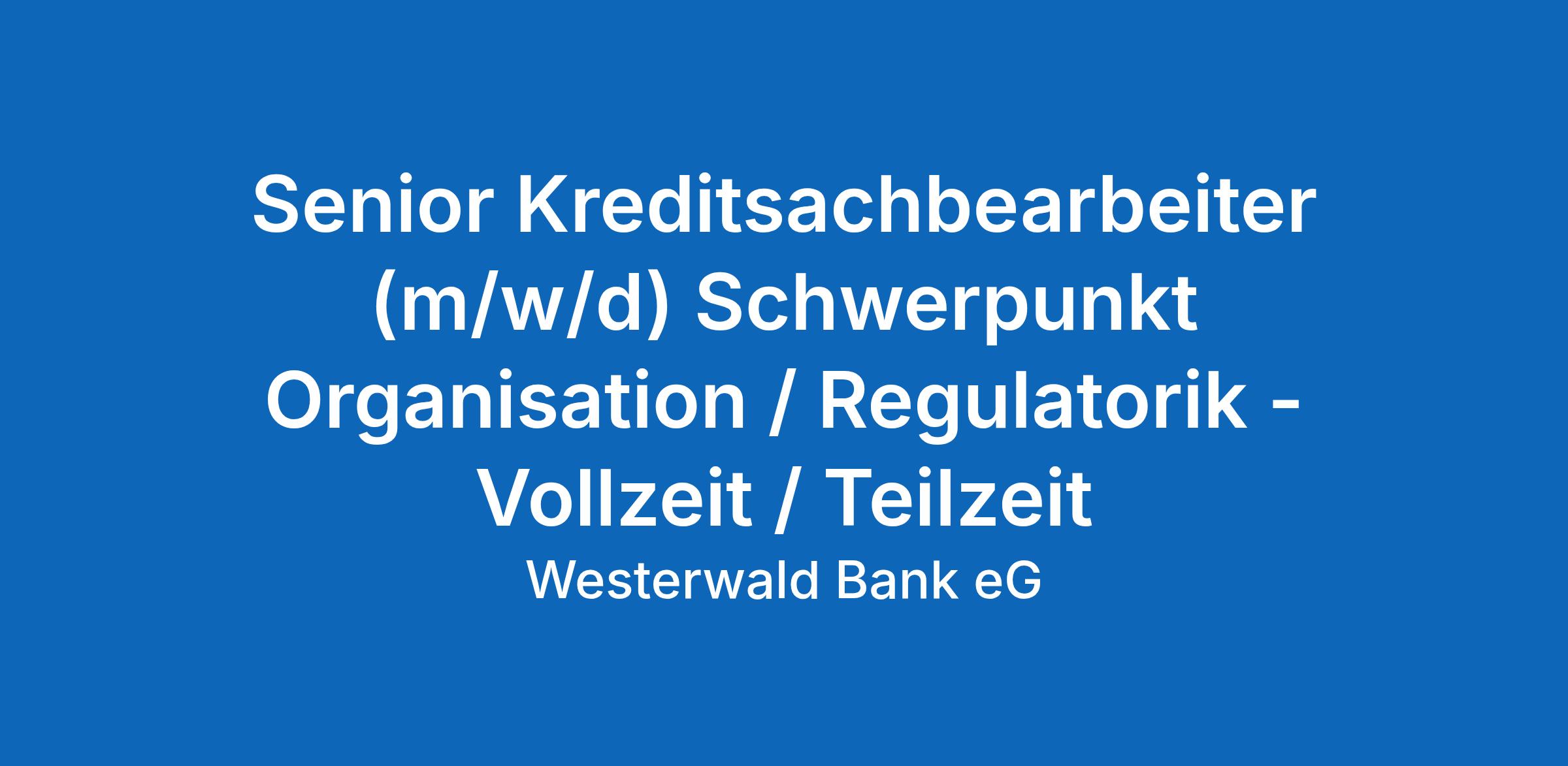 Senior Kreditsachbearbeiter (m/w/d) Schwerpunkt Organisation/Regulatorik