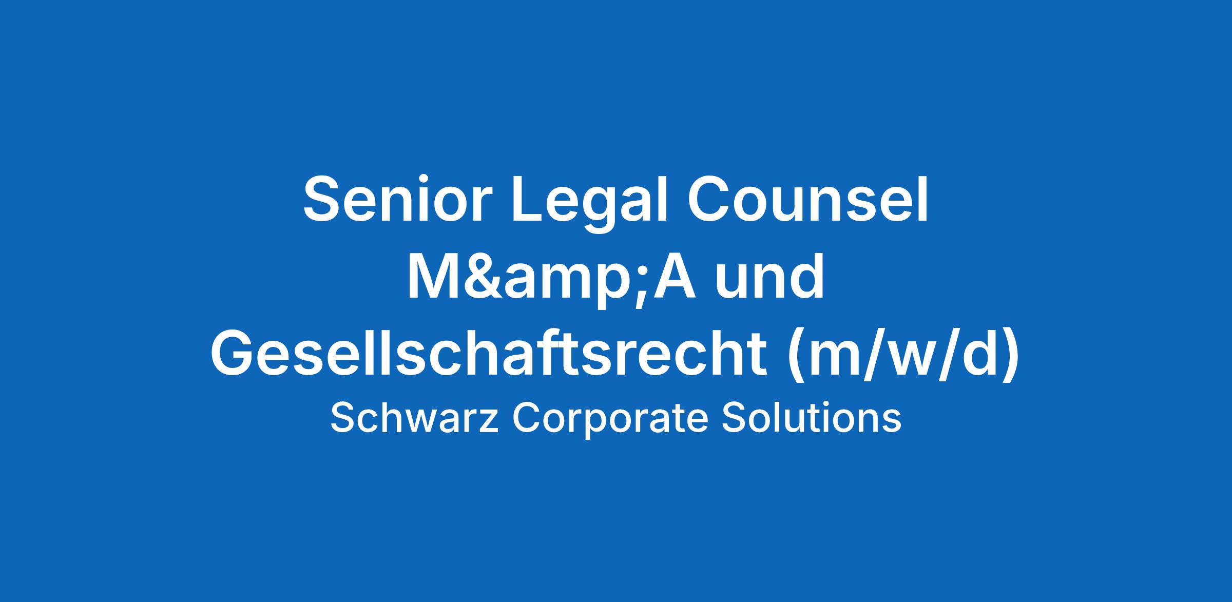 Senior Legal Counsel M&A und Gesellschaftsrecht
