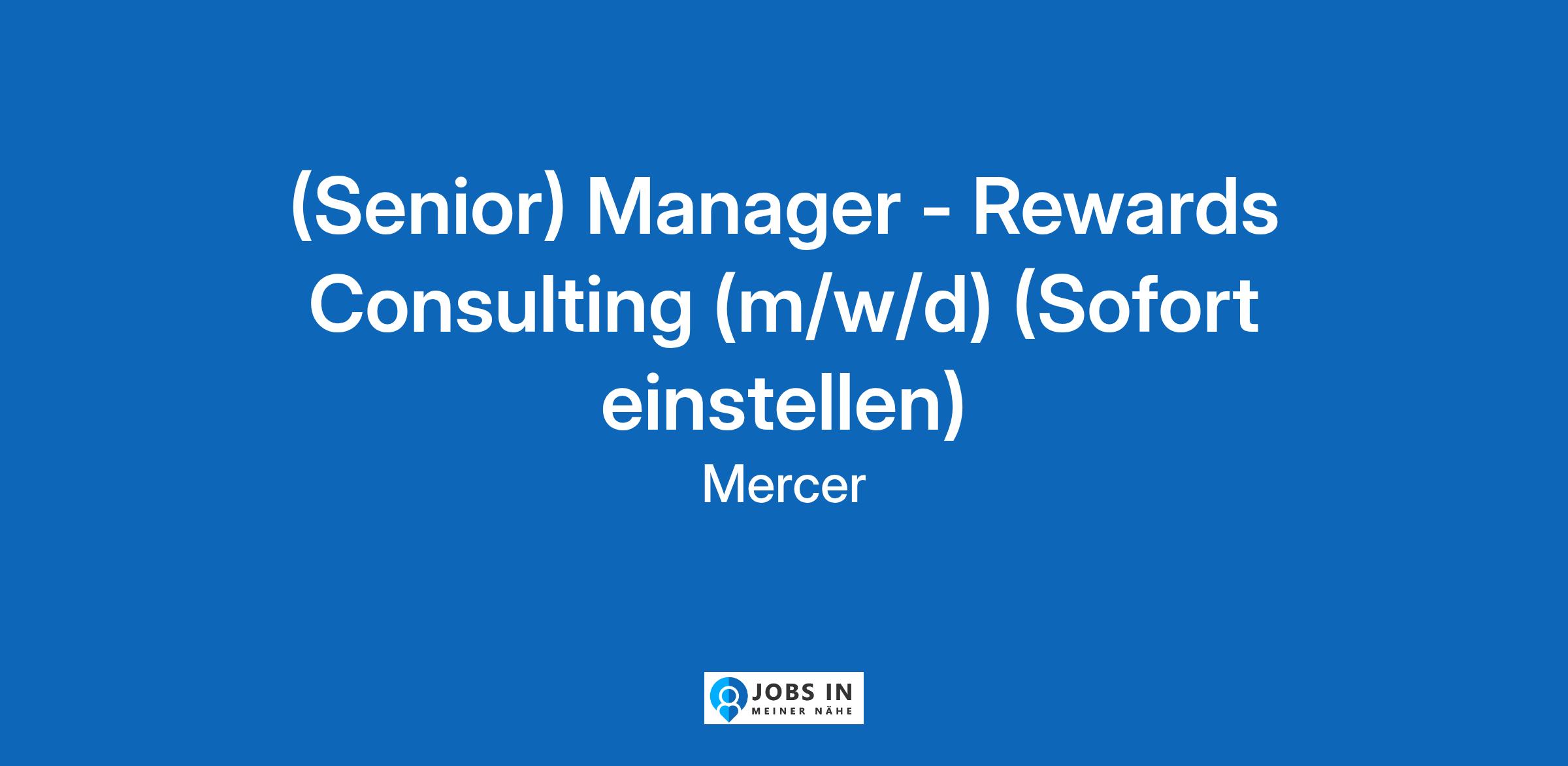 Join to apply for the (Senior) Consultant - Rewards Consulting (m/w/d) role at Mercer