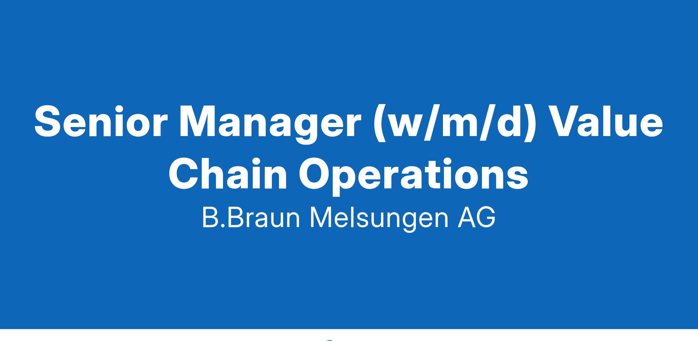 Sie sind ein wichtiger Teil unserer Zukunft. Hoffentlich sind wir auch ein Teil Ihrer Zukunft! Bei B. Braun schützen und verbessern wir die Gesundheit der Menschen weltweit. Sie unterstützen diese Vision, indem Sie Ihr Know-how einbringen und Innovation, Effizienz und Nachhaltigkeit als Werte teilen. Deshalb möchten wir unser Unternehmen gemeinsam mit Ihnen weiter entwickeln. Mit Blick auf Ihre Zukunft leisten wir gemeinsam einen Beitrag zur Gesundheitsversorgung weltweit, mit Vertrauen, Transparenz und Wertschätzung. Das ist Sharing Expertise.Senior Manager (w/m/d) Value Chain OperationsUnternehmen :