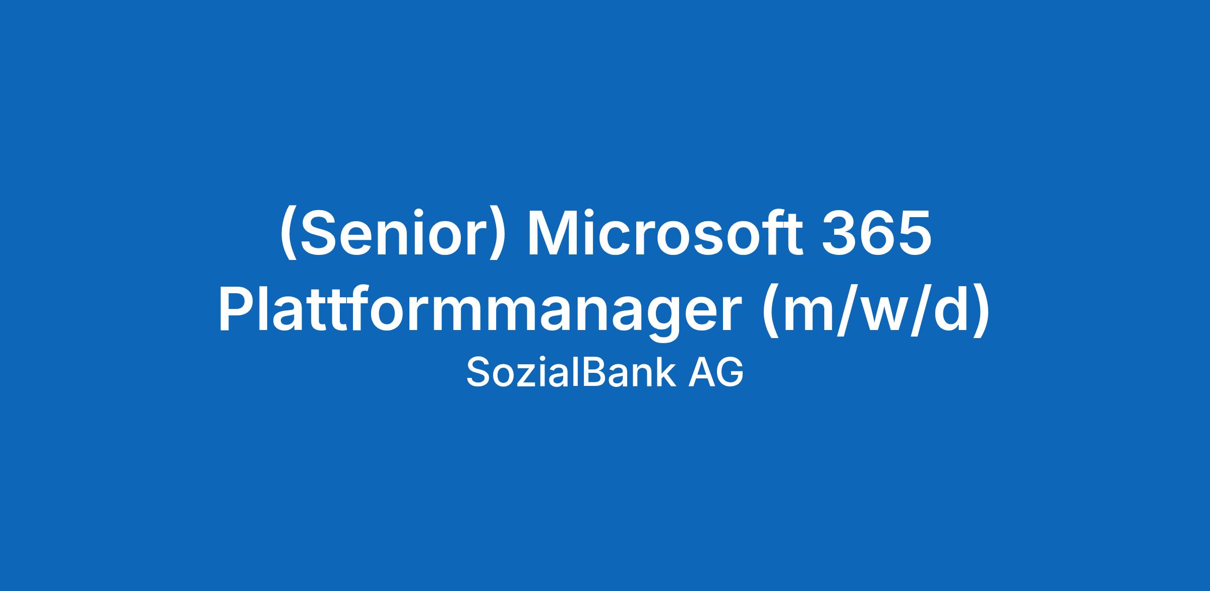 (Senior) Microsoft 365 Plattformmanager (m/w/d)