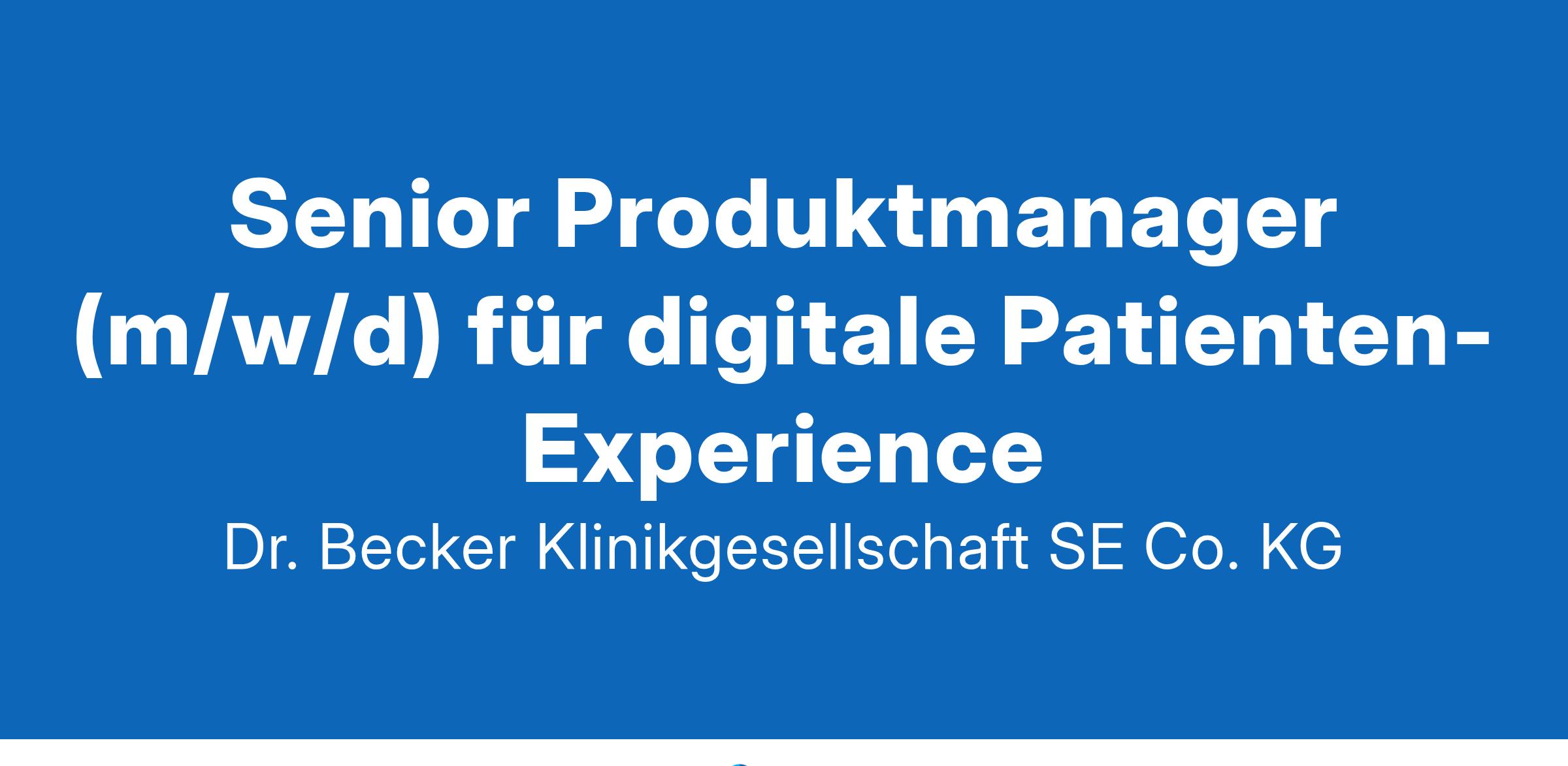 Senior Produktmanager (m/w/d) für digitale Patienten-ExperienceJetzt bewerbenHerzlich willkommen!Die digitale Patienteninteraktion während eines stationären und ganztägig ambulanten Reha-Aufenthalts sowie hybride und rein digitale Therapieangebote gewinnen zunehmend an Bedeutung. Unser Patientenportal »Mein Bereich« spielt als digitaler Patientenbegleiter vor, während und nach einem Aufenthalt in unseren Reha-Kliniken eine tragende Rolle für einen nachhaltigen Reha-Erfolg. In unserer Klinikgruppe nutzen wir die Digitalisierung, um die Interaktion mit unseren Patient:innen effizienter, persönlicher und komfortabler zu gestalten. Dafür suchen wir eine/n innovativen Teamplayer, die/der unsere digitalen Anwendungen und Kommunikationslösungen aus Patientensicht aktiv weiterentwickelt und optimal in den Klinikalltag integriert. Warum Sie als...Senior Produktmanager (m/w/d) für digitale Patienten-Experience... in der Dr. Becker Hauptverwaltung Köln arbeiten sollten.Abwechslung und Verantwortung: