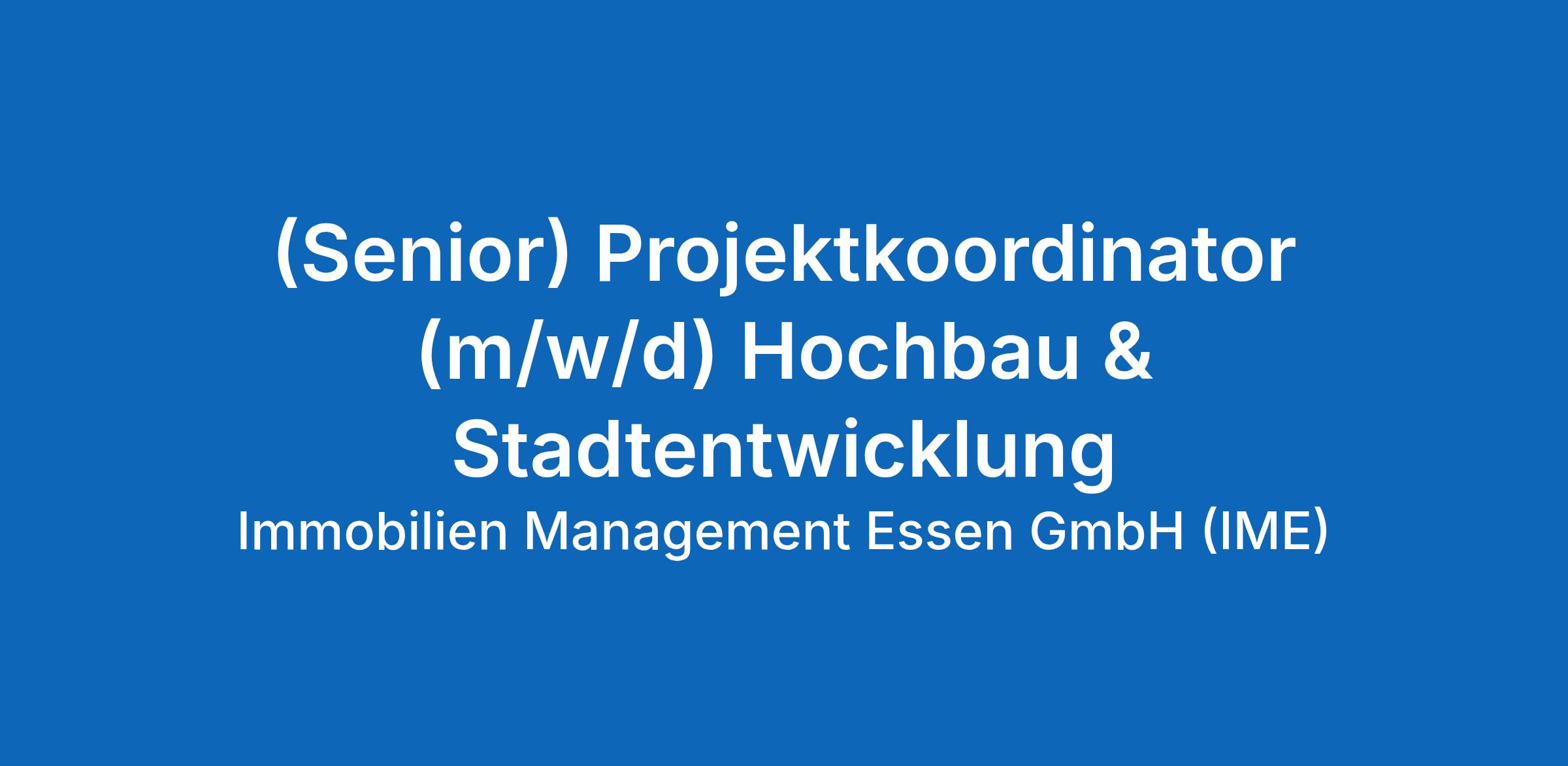 In der Technischen Steuerungseinheit der Immobilien Management Essen GmbH (IME) ist ab sofort in Vollzeit unbefristet folgende Position im Bereich Zentrale Projektkoordination zu besetzen: